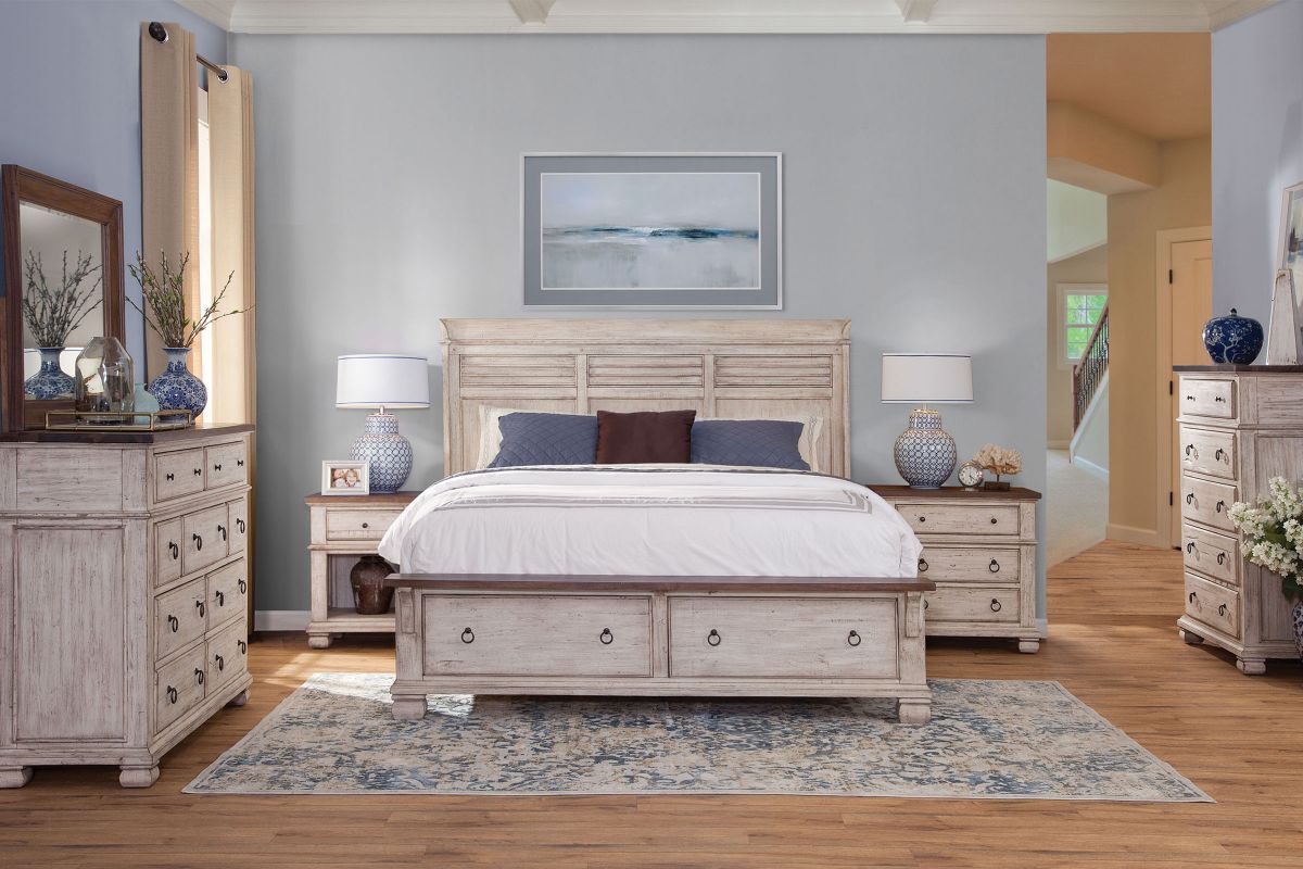 Whether you're looking for farmhouse chic, relaxed vintage or aged cottage style, this bedroom collection is bound to impress you. This collection features a two-tone, distressed finish that pairs weathered white with medium brown, creating the perfect combination that will blend with a variety of color palettes. Offering enough storage to fit your needs, this quaint bedroom collection will make a great addition to your home.