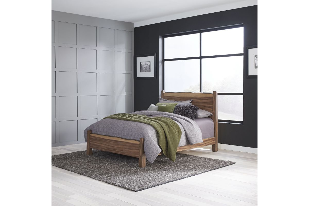 Inspired by the tropical rain forest, the Forest Retreat Queen Bed captures the alluring look of a live edge design for a natural-looking rugged elegance. Crafted from tropical grained wood veneers over engineered woods, this bed is finished with a natural teak look that provides the dramatic light to dark grain pattern. Simple yet striking, it complements a wide array of styles ranging from modern rustic to relaxed retreat. Part of a whole home solution, the Forest Retreat Queen Bed transforms your space into an inviting haven.