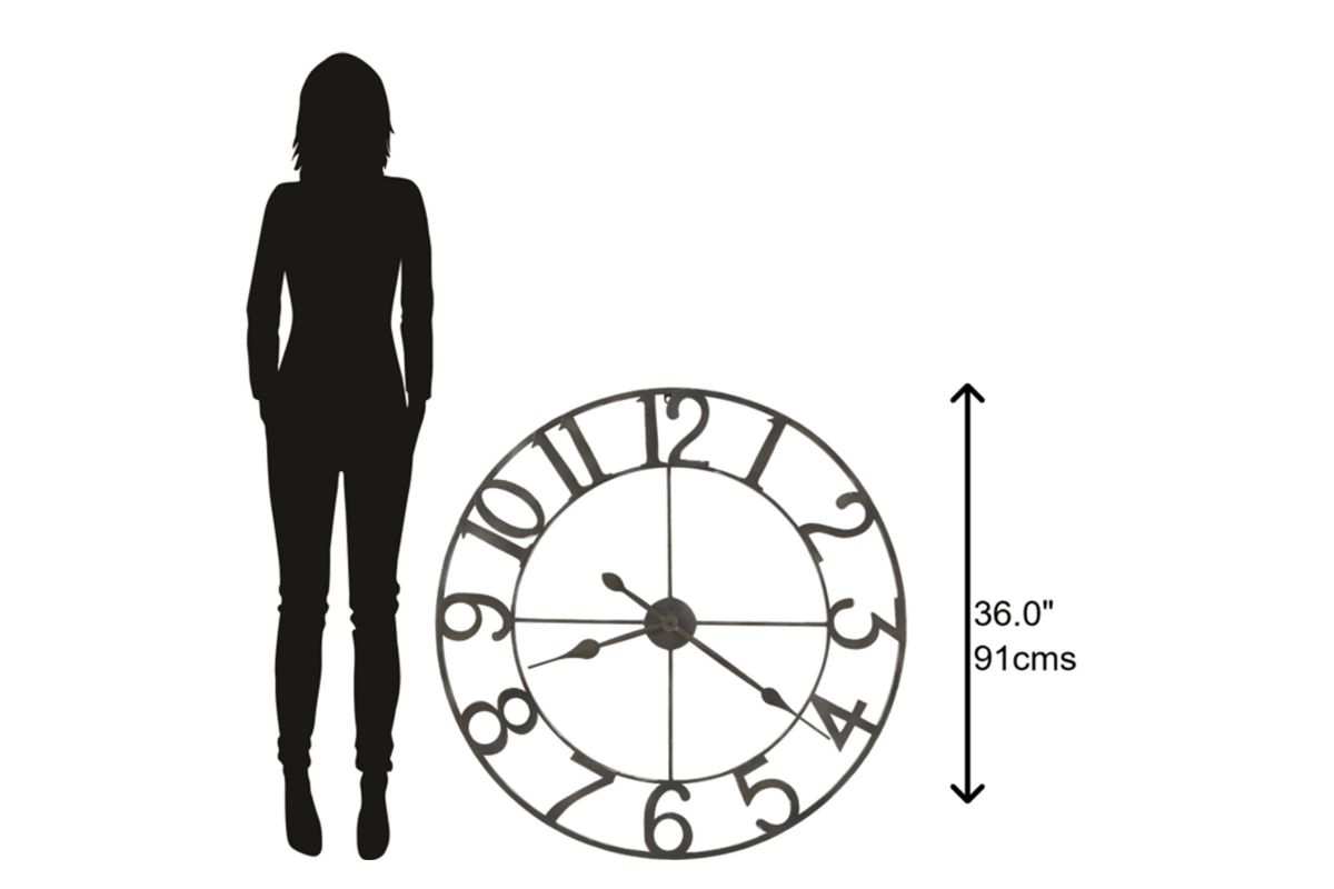 The Artwell Oversized Wall Clock features wrought iron that is finished in dark charcoal gray to complement your home decor. The clock’s quartz movement makes a soft ticking noise without the use of chimes for a quieter environment.