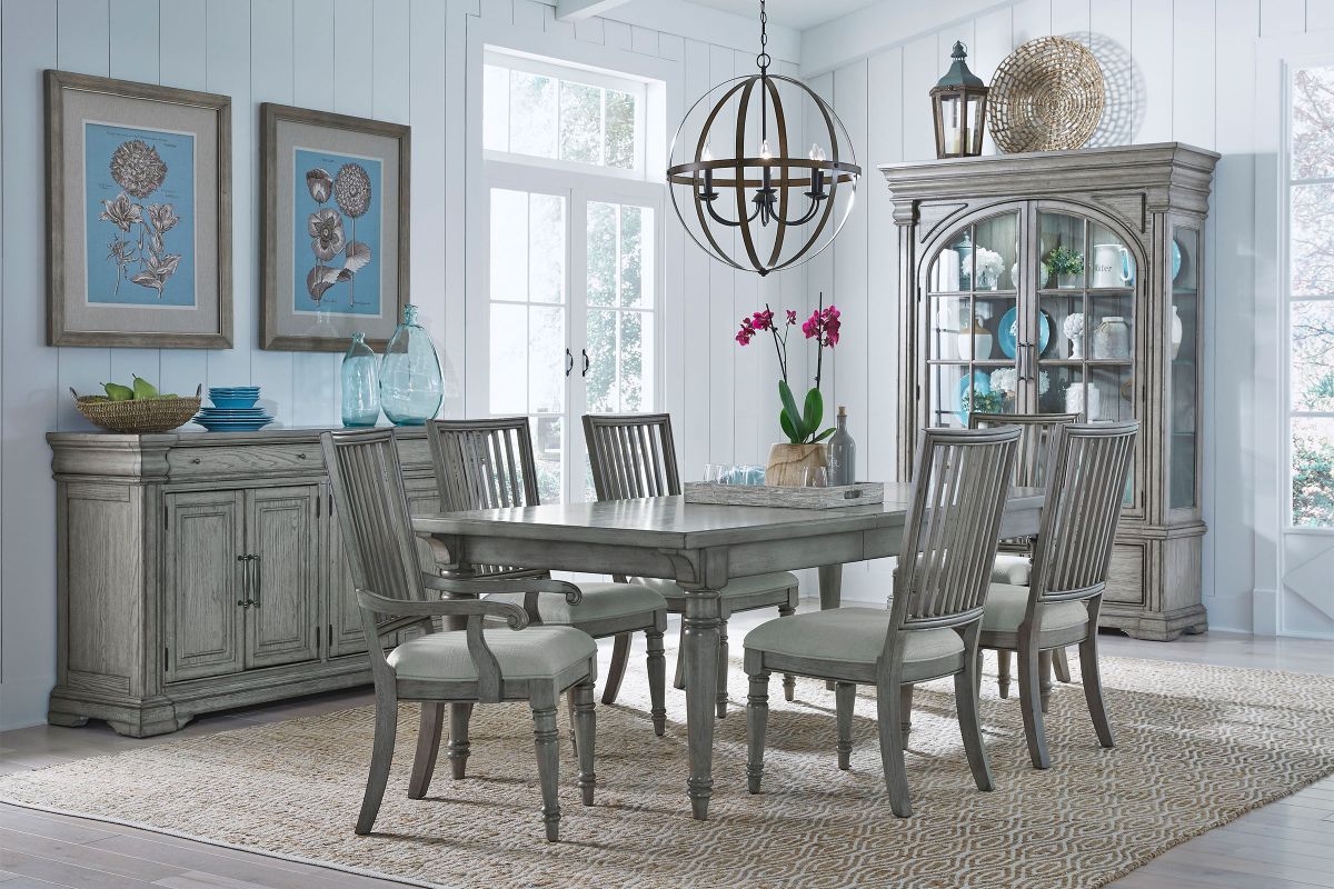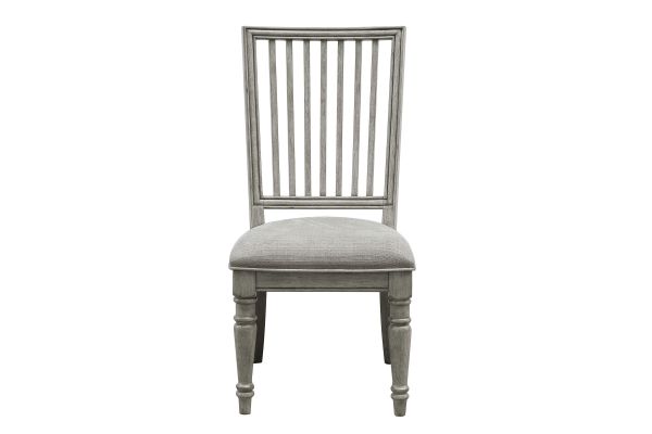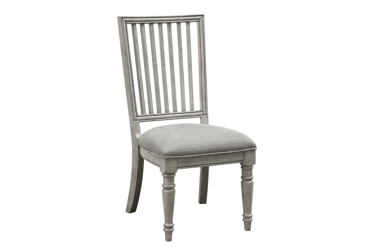 A great dining experience requires a great chair. The Madison Ridge Chair borrows from traditional designs and updates them with a buff gray finish that lets the wood grain show through. Turned front legs and the slat back hark back to gathering around a great farm table and padded upholstered seats provide comfort and support.