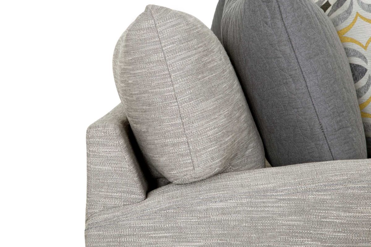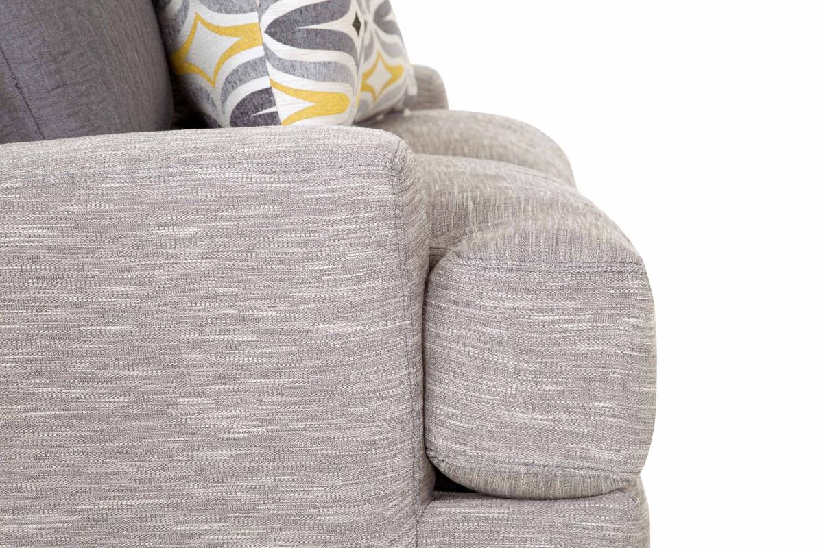 This large-scale contemporary seating group is perfect for rounding out your living space. The Bradley Sectional is crafted in the United States and features a stylish polyester upholstery in a tranquil neutral gray coloring. Constructed of 100% gel-blended foam cushions and chamber-cut seating give the design a soft, sink-into feel but still provides ample back and arm support. Perfect for a weekend of binging Netflix and entertaining guests, the Bradley Sectional is as versatile as it is comfortable.