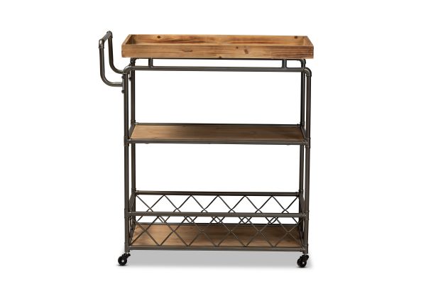 Add a practical and beautiful touch to your space with the ergonomic design of the Amado cart. Made in China, the Amado is comprised of a black finished metal frame fitted with three oak finished wood tiers that lend a charming farmhouse aesthetic. The tray style top makes serving a breeze, while the bottom shelf is fitted with a guard to ensure no items fall during transit. Requiring assembly, the cart is equipped with a handle and four caster wheels for smooth mobility. Whether used to entertain guests or add valuable storage space to your kitchen, the Amado cart adds charm and utility to the modern home.