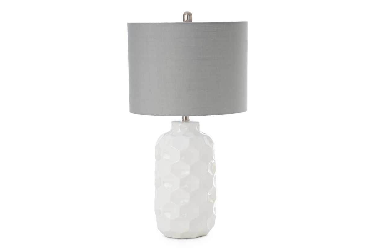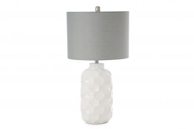 The Lux 30" Table Lamp showcases a thick honey-comb inspired base with subtle steel hardware. Seamlessly paired with a grey linen fabric, the round drum shade perfectly ties together the look of this table lamp. Place on your nightstand or side table to give your space a unique look.