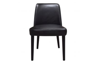 Moody and sophisticated, the Fitch black leather dining chairs sleek silhouette adds visual intrigue to any dining area. The gentle scoop seat is perfectly padded and upholstered with easy-to-clean top-grain leather, while the solid rubberwood legs are tapered and slightly flareda gorgeously dark, atmospheric punctuation to your design story.Easy-to-clean 100% Top Grain Forli leatherSolid rubberwood legsNo assembly required00Made in MalaysiaContemporary. Color: Black We offer 1 Year warranty. Dimension:20.5W 23D 32H. Product Weight:8.5 lbs. Material: Upholstery: 100% Top Grain Forli LeatherSolid Rubberwod LegsFoam0
