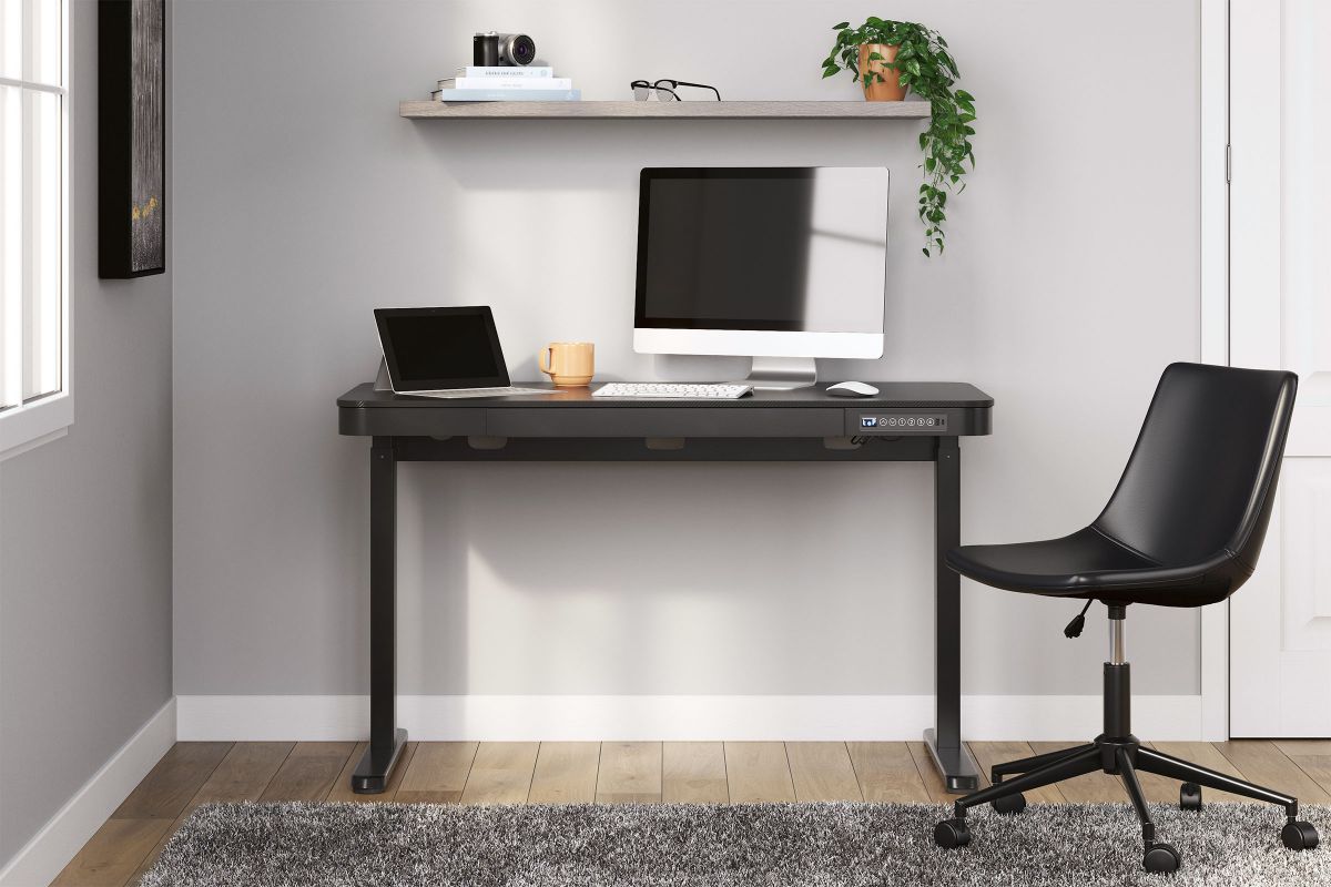Sorry, the Black Lynxtyn Adjustable Height Desk by Millennium is no longer available. We've left this page up for reference only. Check out the great alternatives on this page or call 248-481-2208 or Chat with a Gardner White Sales Specialist about similar products.