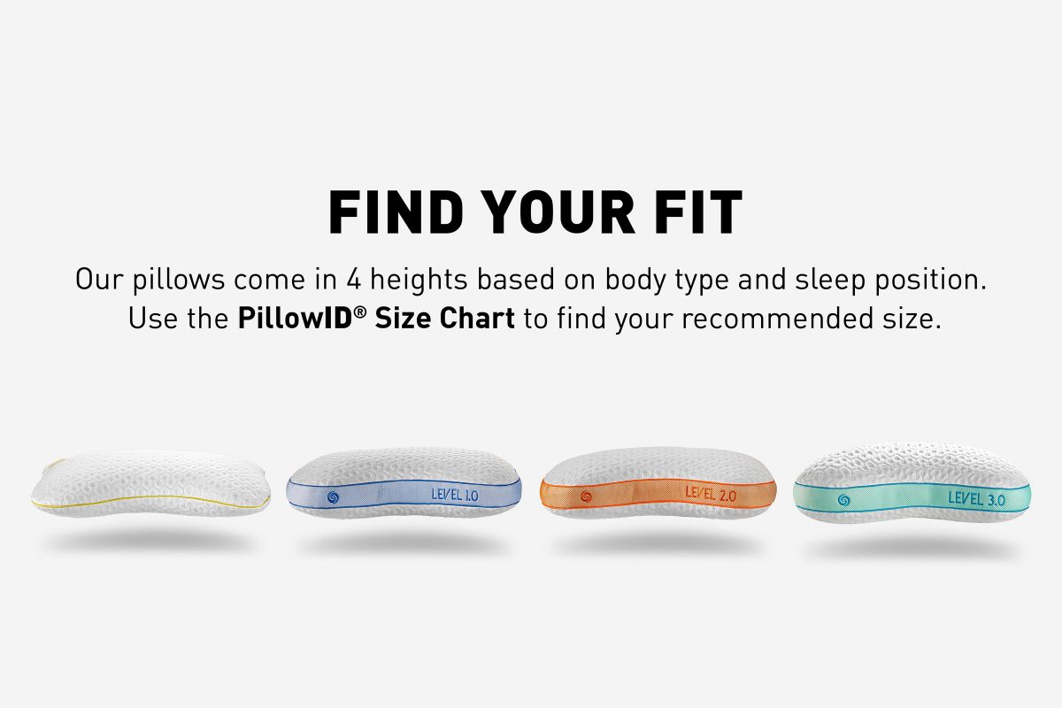 - Level comes in four different sizes, or heights, ensuring the correct fit regardless of body type and sleep position.
