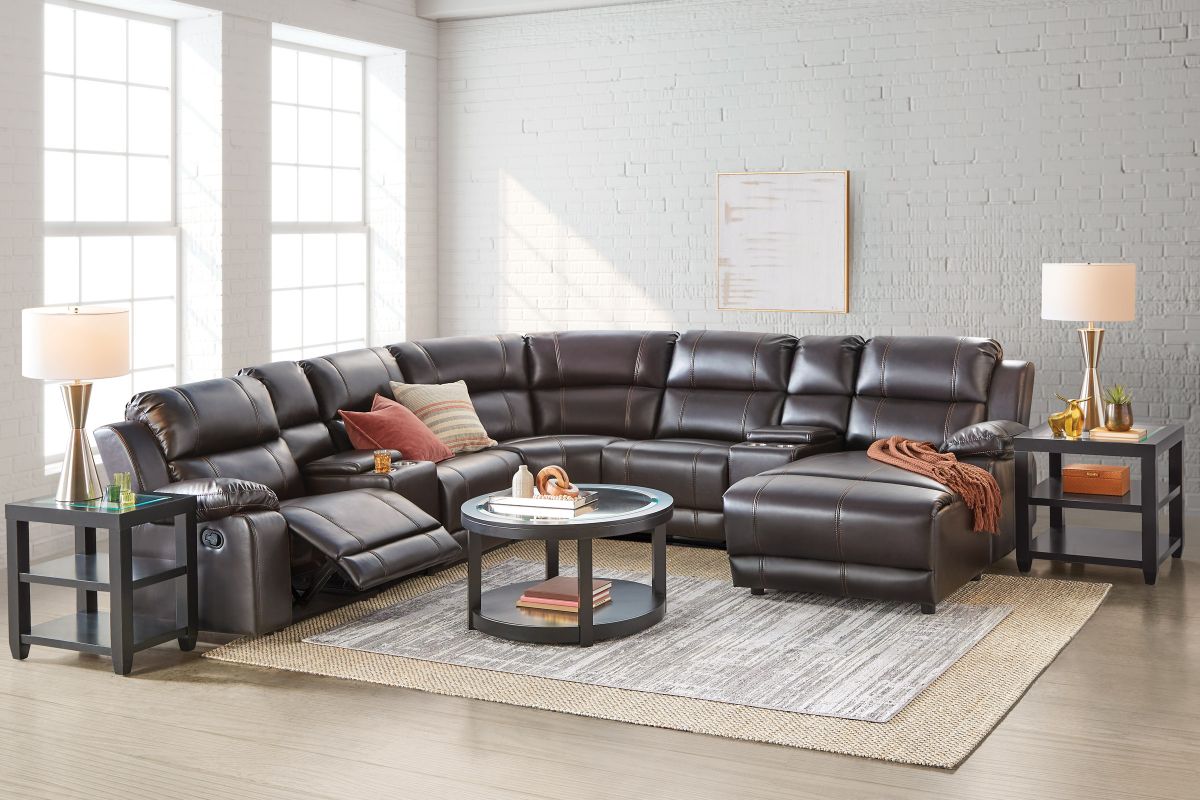 Sorry, the Briston 7-Piece Reclining Sectional with Right Arm Facing Chaise is no longer available. We've left this page up for reference only. Check out the great alternatives on this page or call 248-481-2208 or Chat with a Gardner White Sales Specialist about similar products.