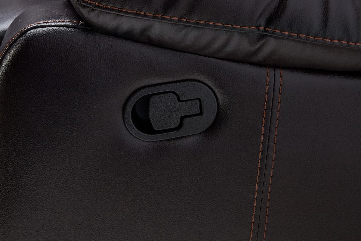 Featuring a clean frame with sophisticated details and eye-catching contrast stitching, the minimally designed Briston Motion Collection is a crowd-pleaser. Draped in a chocolate, faux leather fabric, this collection exudes a comfortable contemporary look. Soft-rounded edges and pillow top cushions on the arms and headrests provide equal parts comfort and support. Featuring a manual reclining chaise and two additional manual recliners, relaxation is magnified with the Briston Motion Collection.