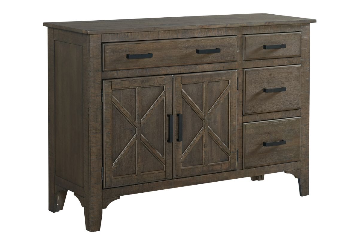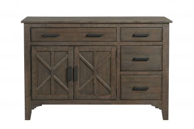 Bring convenient and stylish storage to your dining room with Sutton server. X motifs and light distressing gives a rustic farmhouse look. The four full extension drawers and adjustable shelves provides plenty of accessible storage.