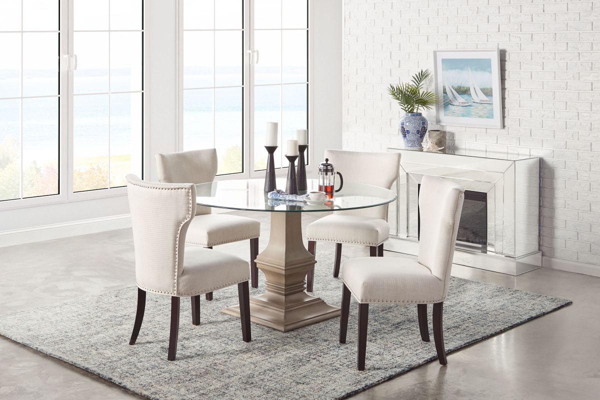 The Diane Collection offers a unique style, the Glass table with Solid hardwood base and OG Edge top.
