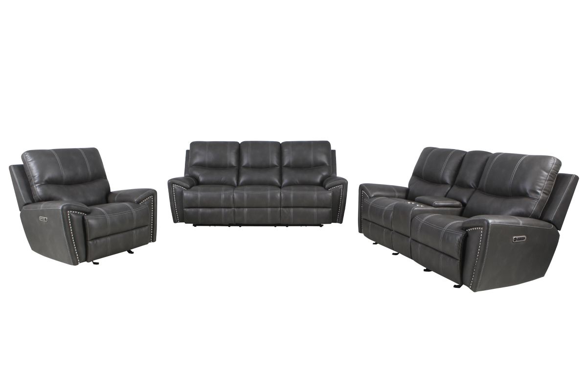 Revamp your living space with the stylishly designed Brooks Dual Power Recliner. Designed with comfort as well as style in mind, this sofa's clean lined silhouette will keep your space feeling contemporary. Tailored detailing on the cushions, thick contrast stitching and a nickel nail head trim around the flared arms add a high-quality look and feel. Let the Brooks Dual Power Recliner be your favorite space in your home.