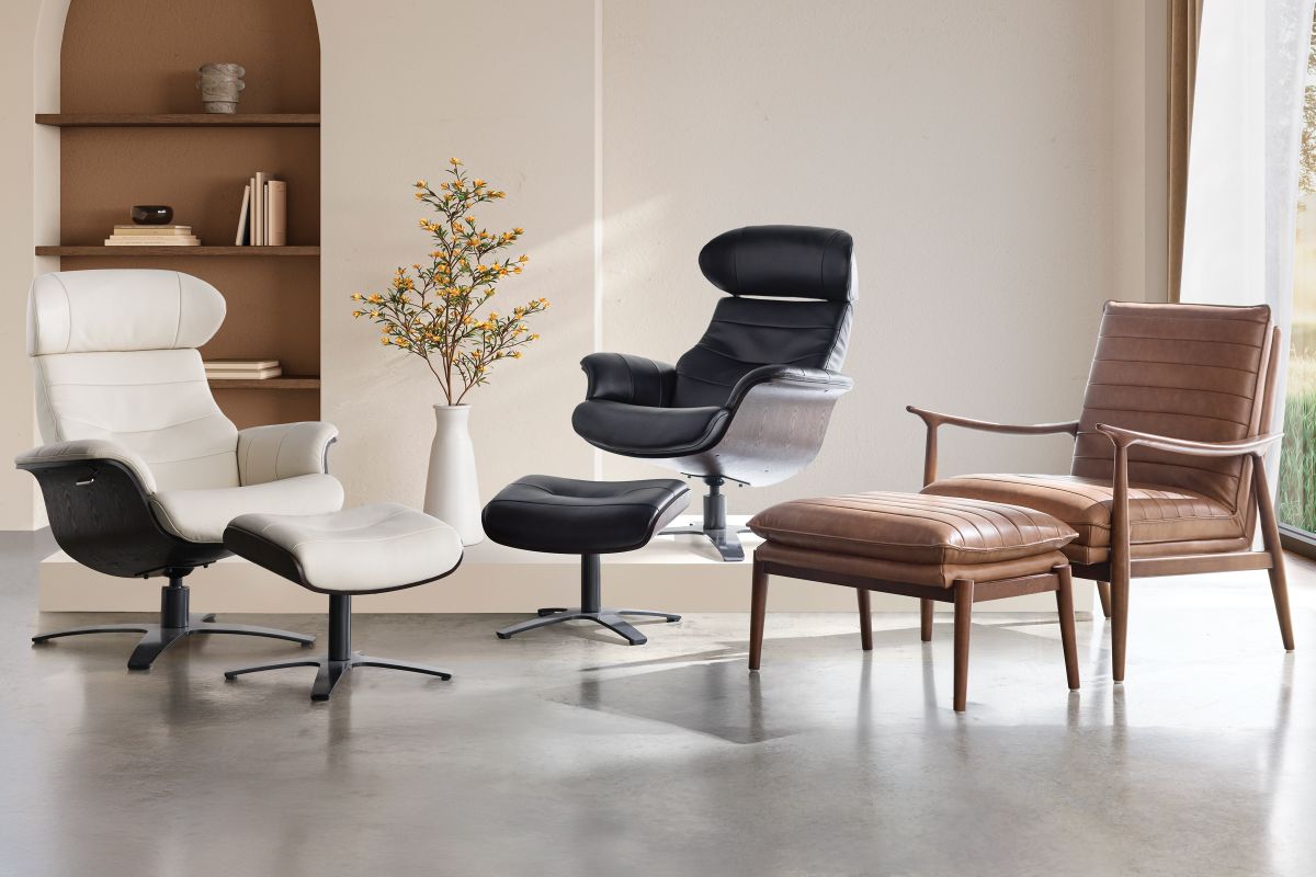 The Florida leather swivel chair is the perfect modern addition to any living area. It's silhouette is sleek yet comfortable, with gently curved arms and a slightly reclined backrest that invites relaxation. This swivel chair can be paired with its matching ottoman promising a delightful seating experience.