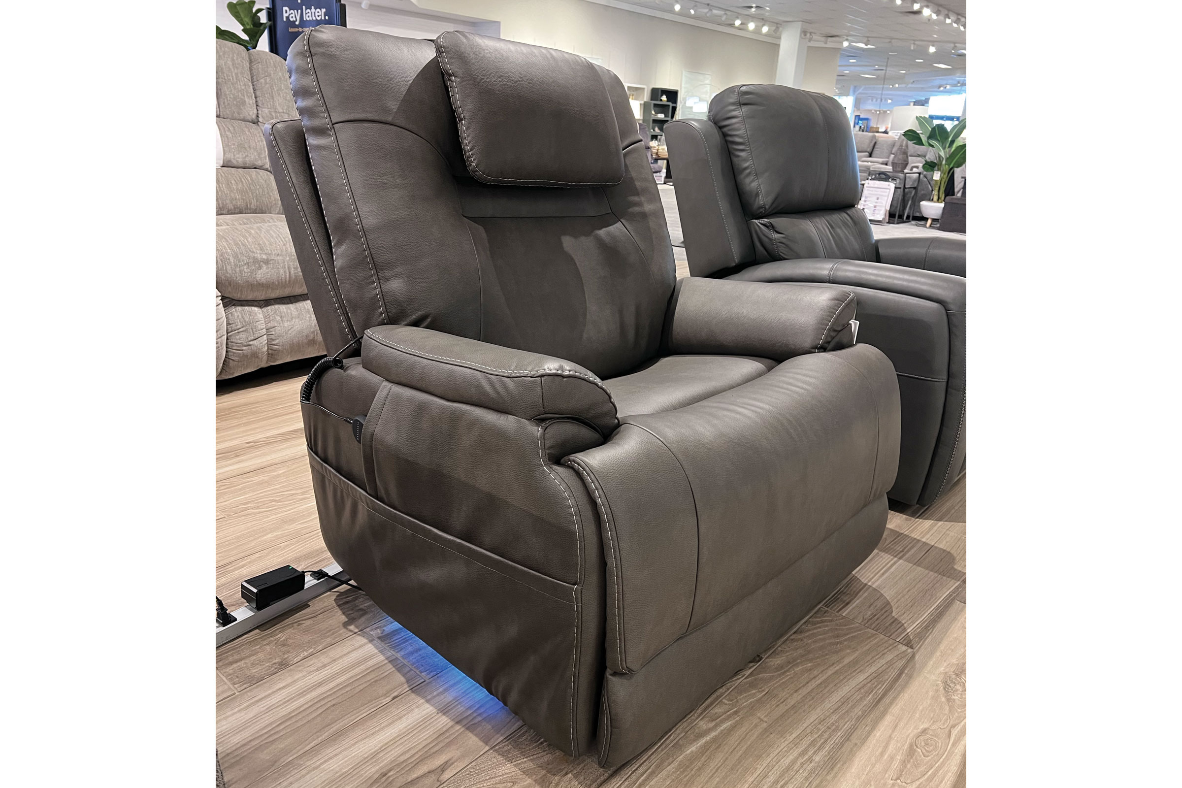 - Motion-activated LED base lighting turns on when you approach or get out of the recliner, and can be adjusted in brightness and color in the MyRecline app