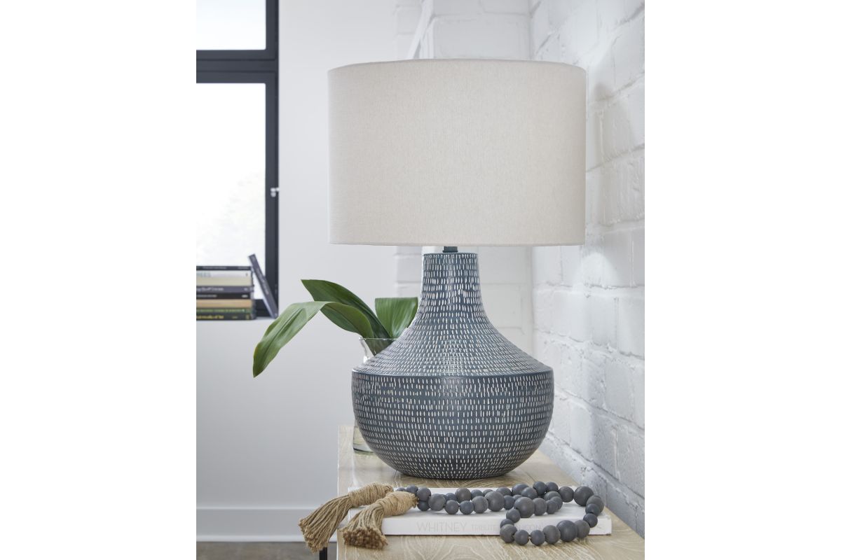 Enhance your decor with a touch of captivating texture. This table lamp features a beautifully crafted body made of hammered metal with an antiqued finish. Topped with a crisp off-white fabric shade, it illuminates a casual vibe with soft, diffused light. Create an inviting atmosphere and make every moment shine.