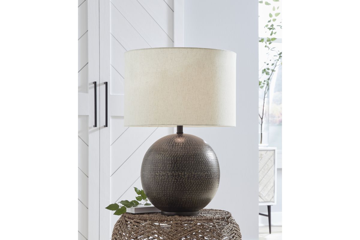 Turn on to a casually elegant sense of style with this table lamp. Its richly finished metal allures in a striking black with goldtone accents. Whether set on a side table or resting on your nightstand, it lightens the mood and brightens your home's overall ambiance and style.