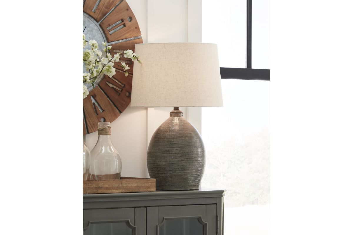 Set the scene for earthy elegance with this table lamp with terracotta base. Whether your decor is modern or eclectic, what a complement to your bedroom, living room or office.