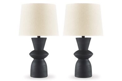 Turn on the brilliance and modern flair of this table lamp set. The angular silhouette and intriguing base in distressed black are the definition of bold style. These lamps pair wonderfully with contemporary furniture.