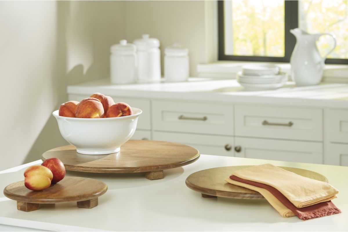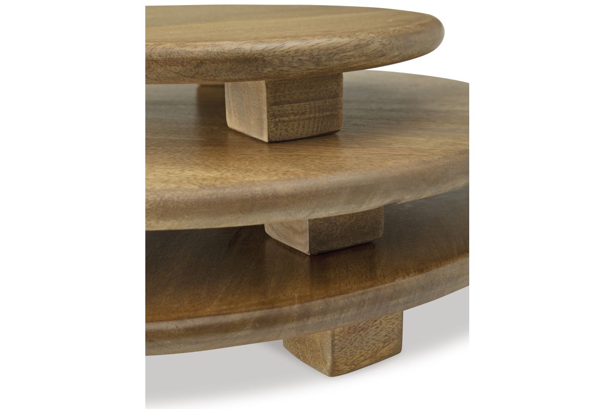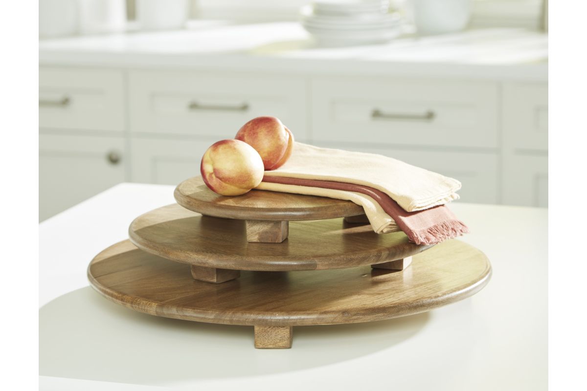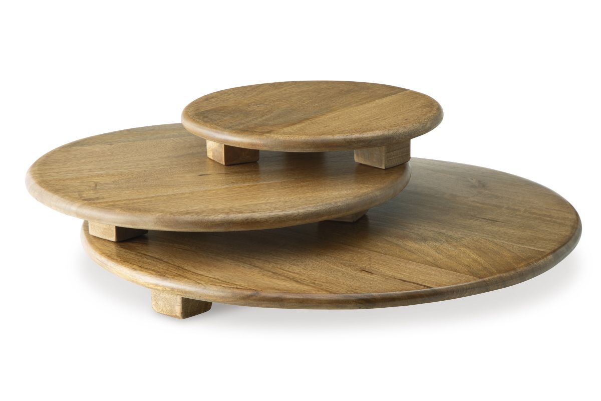Serving up style has never looked so chic. Naturally beautiful, this tray set impresses with honey-hued wood full of warm, rich character. With three different sizes, you can use the tray that best suits your charcuterie board or hors d'oeuvres spread. Or switch up your display by stacking the trays together for a tiered look.
