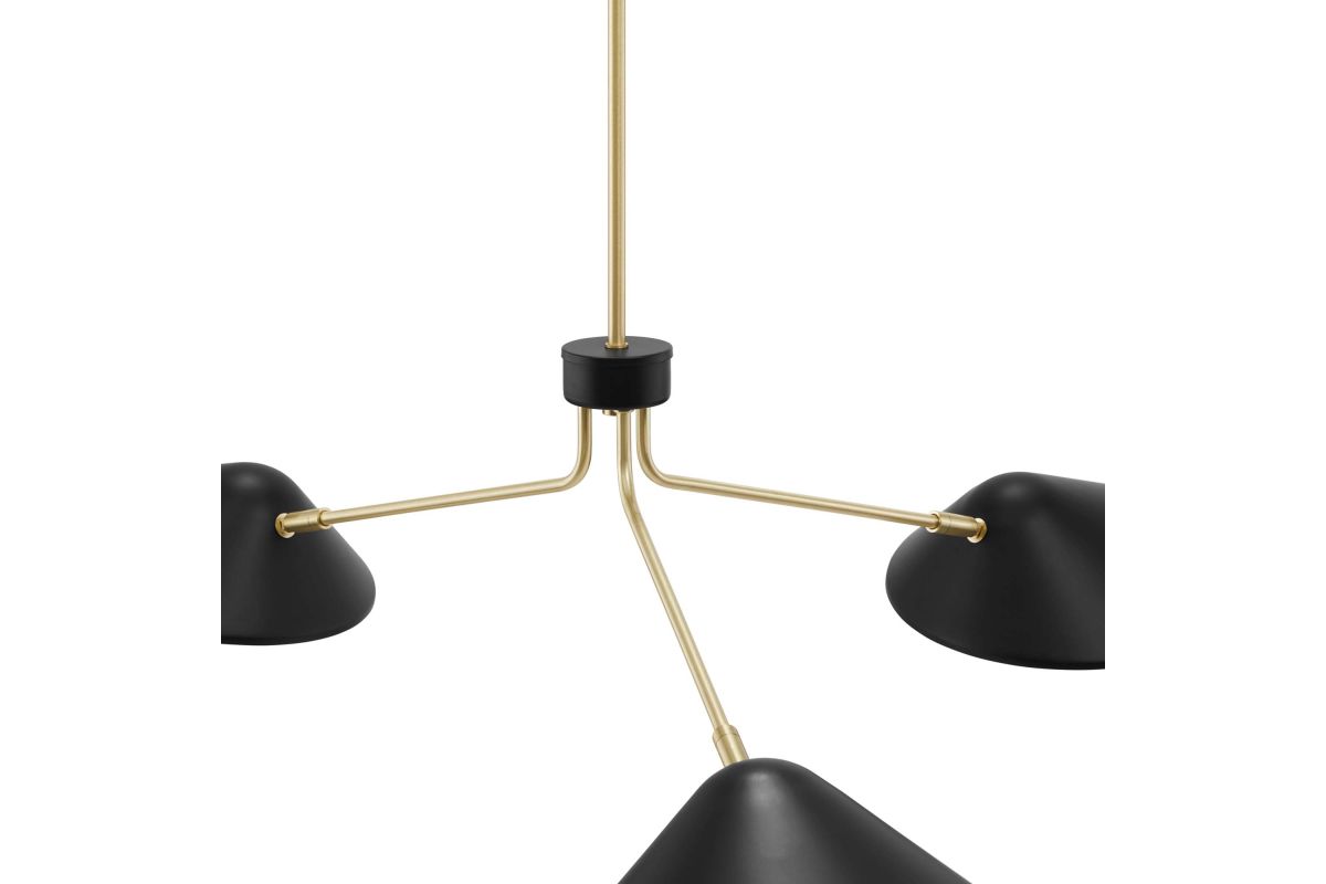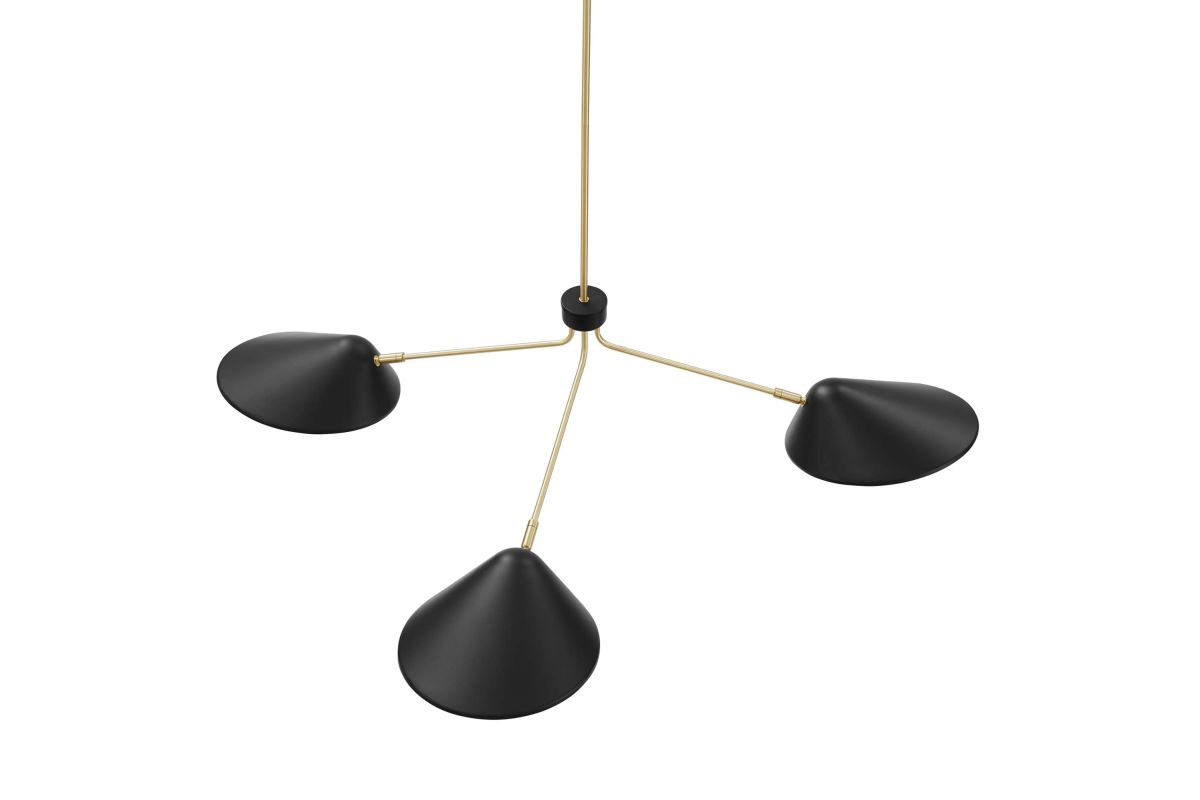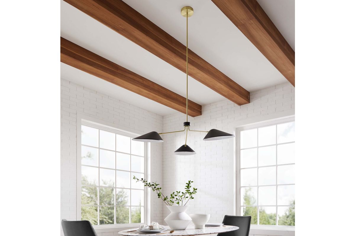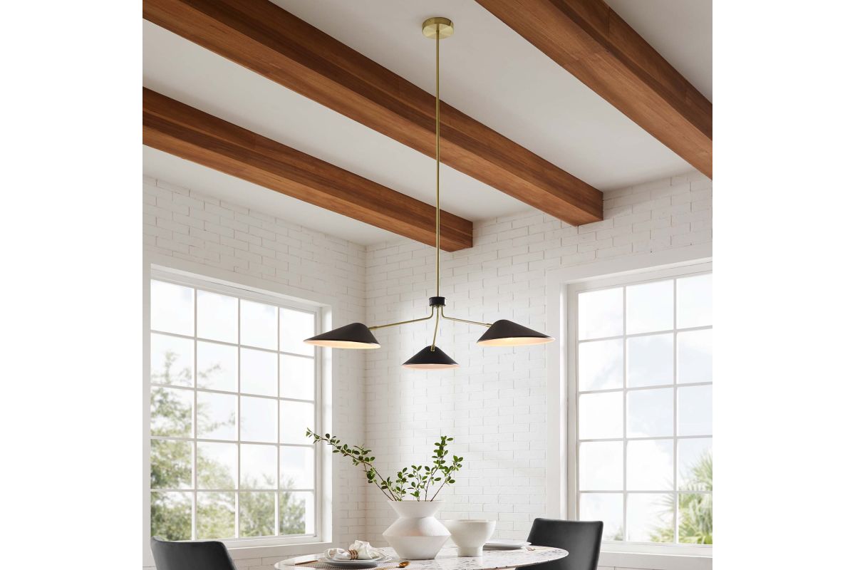 The design integrity of the Journey 3-Light 14" Arm Pendant assures artful and functional illumination in your dining room, living room, or bedroom. Create kitchen task lighting with the sleek swing-arm powder-coated metal shades. This streamlined triple-light pendant compliments a variety of decors, from mid-century modern to minimalist contemporary. A satin brass ceiling canopy and height-adjustable hanging rods enhance the radiating essence of this elegant pendant light fixture. The Journey Pendant Light is compatible with dimmer switches (not included). Requires 3 E26 bulbs, 40W max or LED equivalent (not included). Professional installation required.