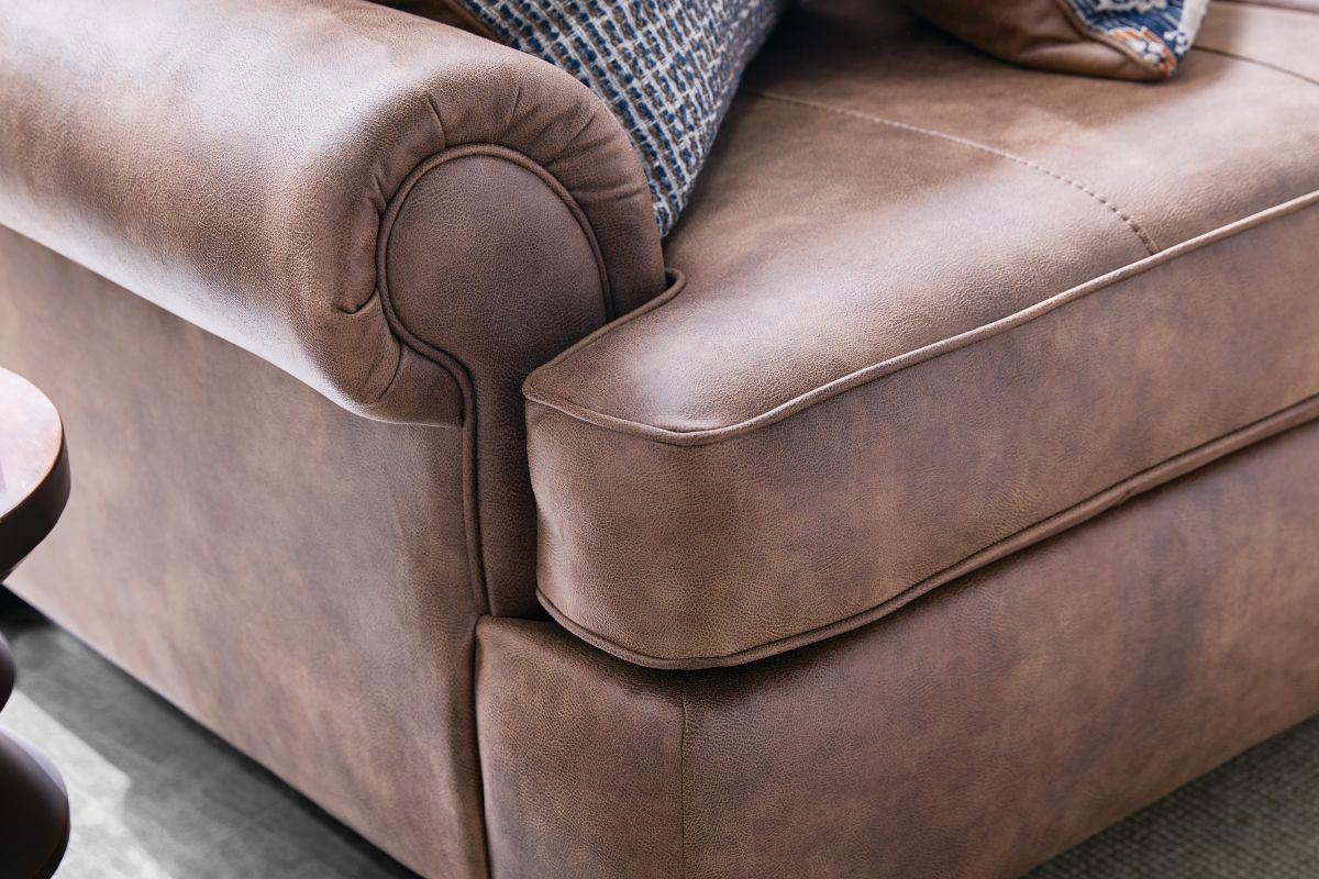 The Austin Collection offers a perfect balance of comfort, style, and timeless appeal. This collection, which includes a sofa, loveseat, chair, and ottoman, is designed to create a warm and inviting atmosphere in your home. Its casual rustic style features classic rolled arms and tapered block feet, blending traditional elegance with modern durability. Upholstered in a rich camel fabric with a soft, luxurious hand, this collection not only looks great but feels even better. Each piece is crafted with quality construction to ensure lasting comfort and support, making it perfect for everyday living. The generous, deep seating and plush cushions provide ample space for relaxing or entertaining, while the cohesive design brings a touch of rustic sophistication to your space. Transform your living room into a cozy retreat with the Austin collection—crafted for those who value both style and comfort.