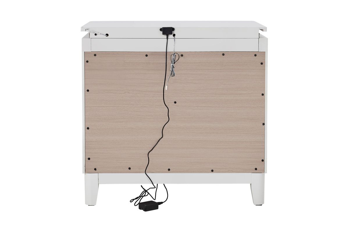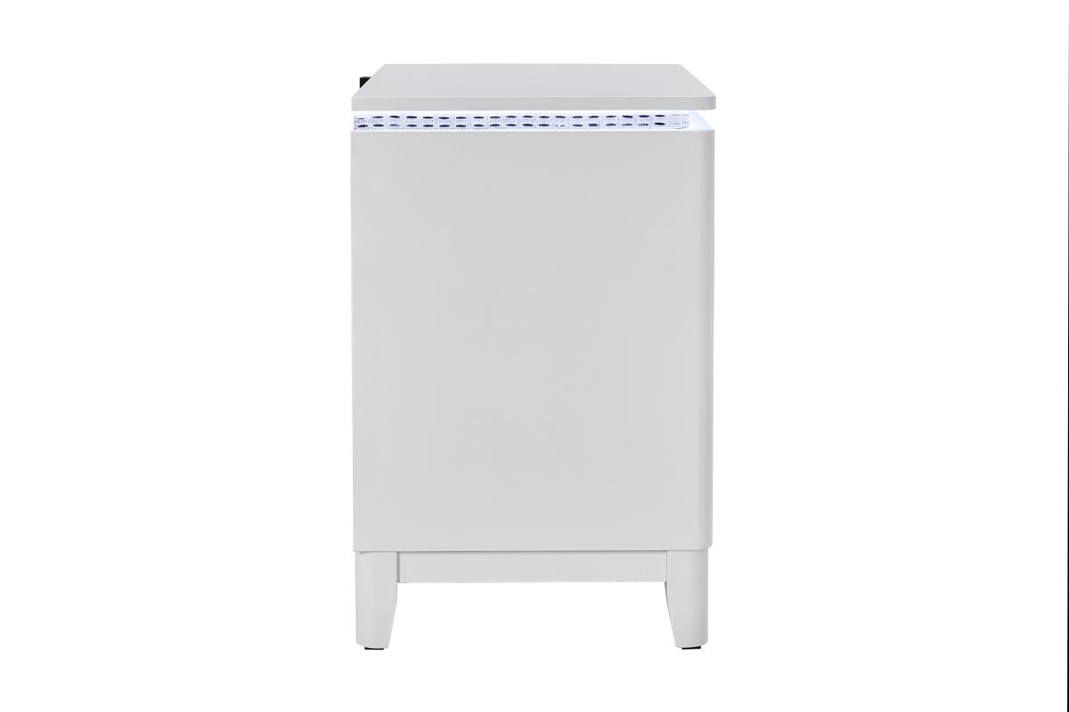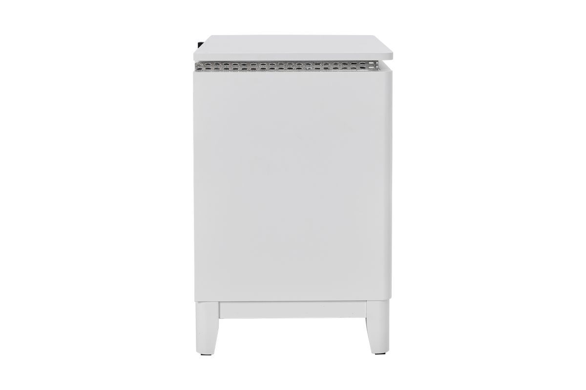 The matching Sabrina nightstand completes the set with its LED lighting and an USB Port for Charging, providing a cohesive and stylish bedroom atmosphere.