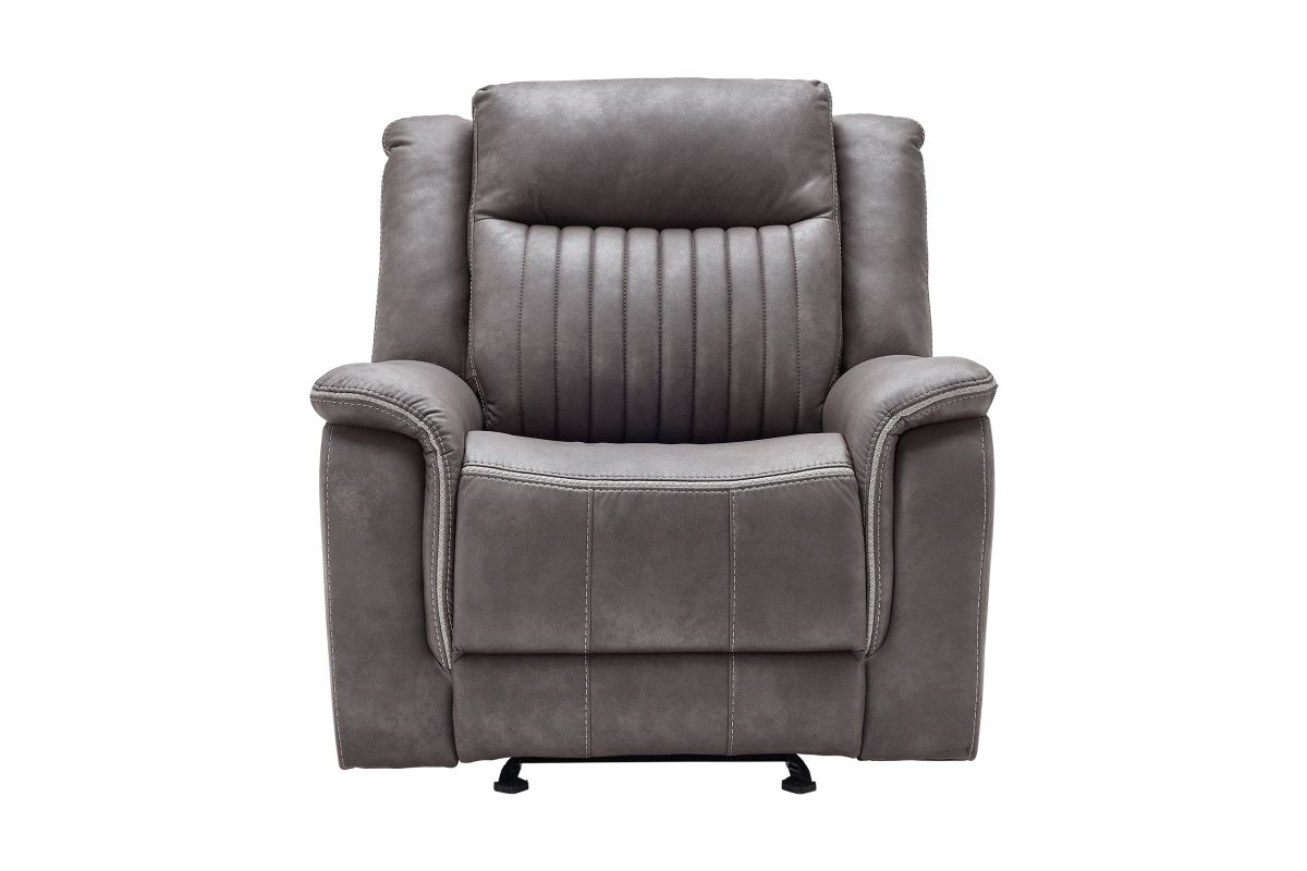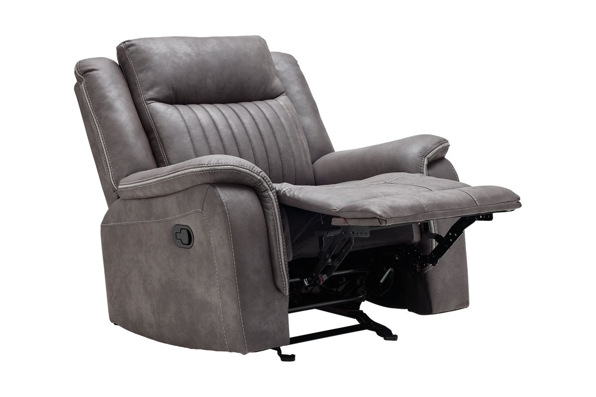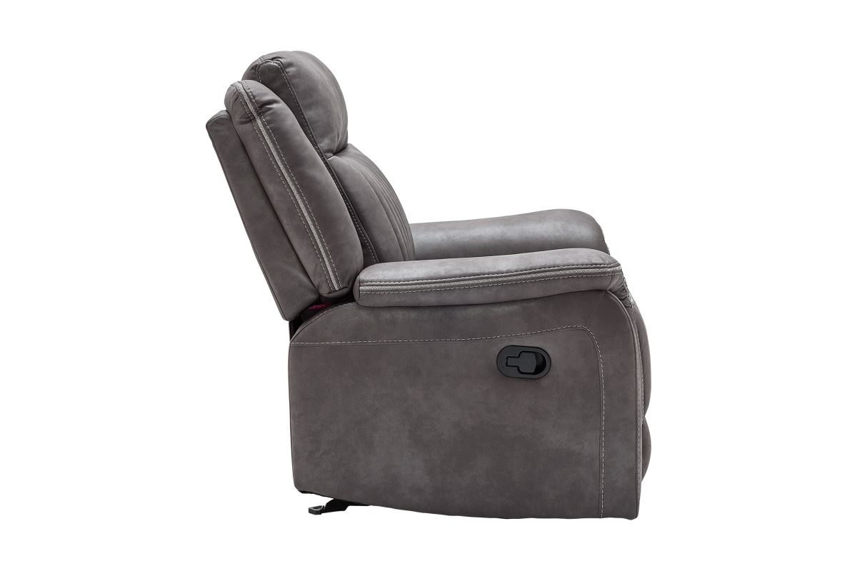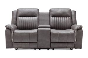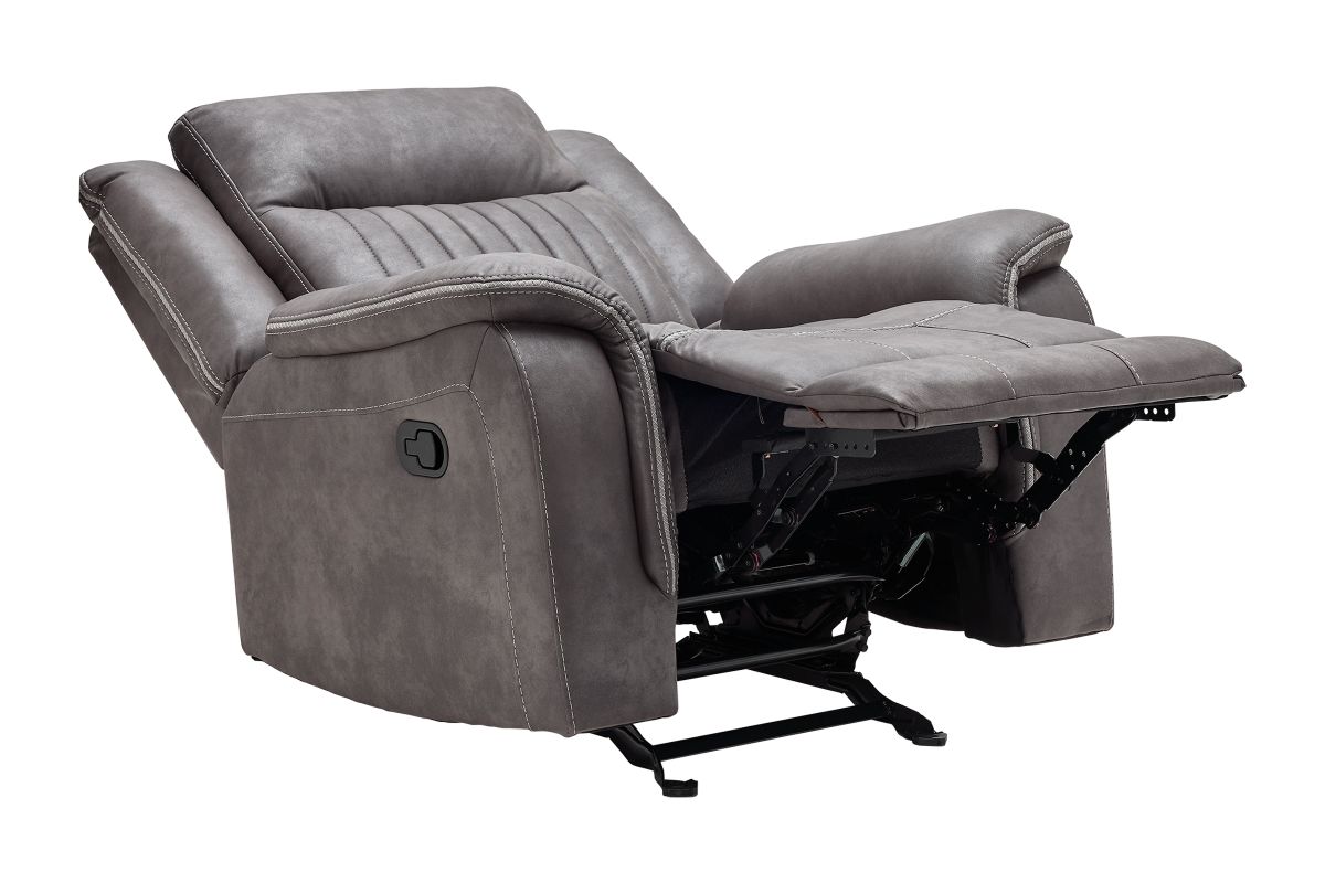 Upgrade your relaxation experience with the Tyson living room collection, designed for both style and ultimate comfort. Upholstered in sleek gray faux leather, this set includes a reclining sofa, console loveseat, and recliner, offering plush seating with a contemporary edge. Featuring effortless reclining at the pull of the lever, this set provides customized comfort with high-density cushions and supportive backrests for all-day relaxation. The loveseat includes a convenient storage console with built-in cup holders, keeping essentials within reach. Whether you're hosting guests or unwinding after a long day, the Tyson reclining set brings modern luxury and everyday functionality to your home.
