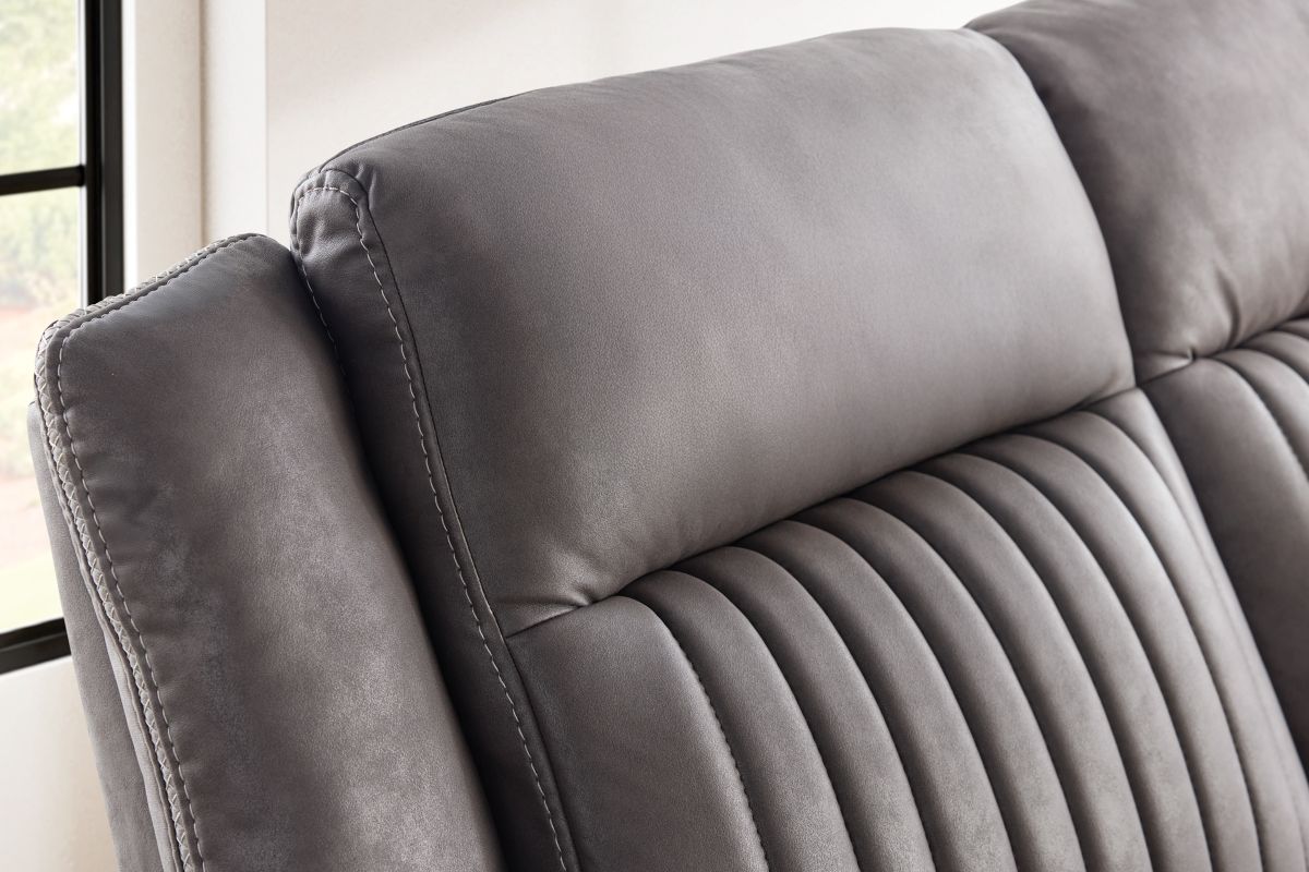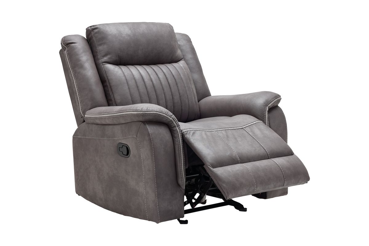 Upgrade your relaxation experience with the Tyson living room collection, designed for both style and ultimate comfort. Upholstered in sleek gray faux leather, this set includes a reclining sofa, console loveseat, and recliner, offering plush seating with a contemporary edge. Featuring effortless reclining at the pull of the lever, this set provides customized comfort with high-density cushions and supportive backrests for all-day relaxation. Whether you're hosting guests or unwinding after a long day, the Tyson reclining set brings modern luxury and everyday functionality to your home.