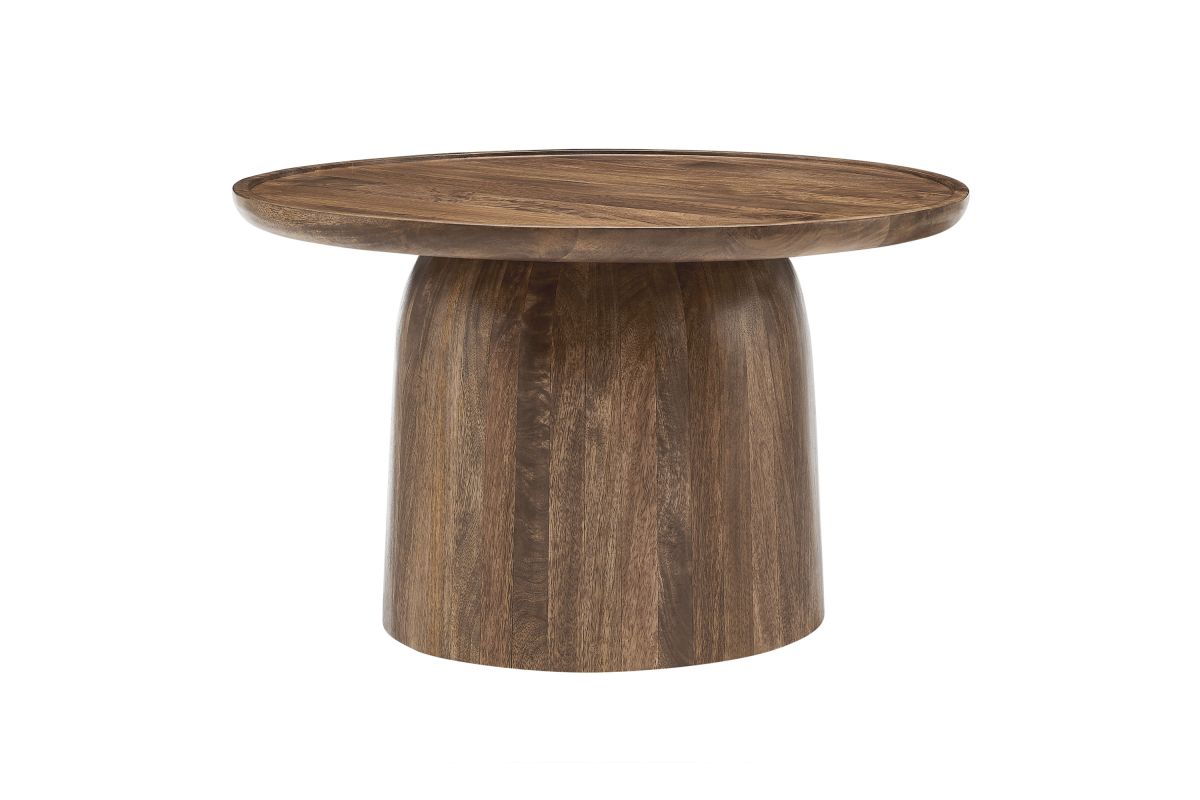Bring timeless elegance to your living space with the Holloway Round Mango Wood Coffee Table. Crafted from solid mango wood, this 30-inch coffee table boasts a smooth, circular drum design that combines contemporary style with mid-century modern appeal. The solid tabletop provides a durable surface for displaying decor, holding drinks, or serving as a centerpiece in your living room. Designed to complement small spaces and apartments, this round wood coffee table offers an inviting aesthetic that enhances a variety of interiors. The natural wood grain and warm tones highlight the beauty of mango wood, creating a versatile and sophisticated accent table that’s perfect for modern and minimalist living rooms alike. Weight Capacity: 156 lbs.