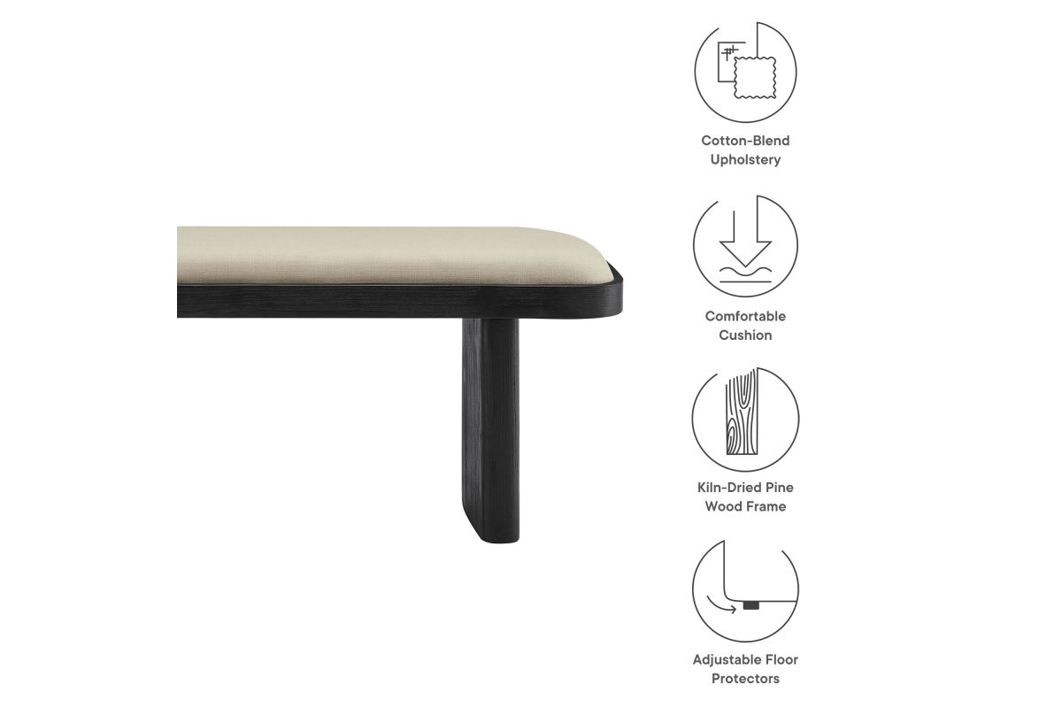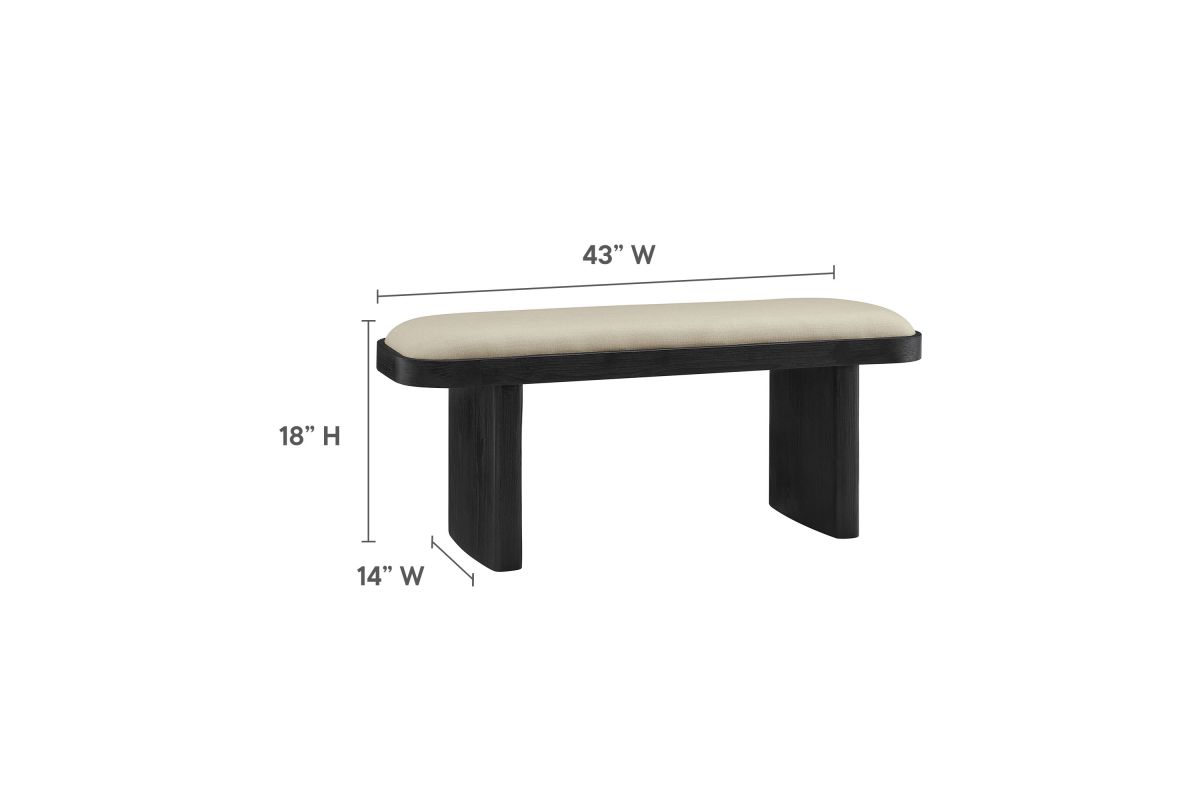 The Iver Oval Wood Fabric Bench brings a modern touch to any space with its sleek design and functional versatility. Crafted with a kiln-dried solid pine wood frame and upholstered in a soft cotton-blend fabric, this 43-inch bench offers dense foam padding for added comfort. Its oval-shaped seat and uniquely angled legs create a striking silhouette that complements contemporary and minimalist decor. Adjustable floor protectors provide stability and protect your floors, making it a practical choice for busy areas. Perfect for entryways, bedrooms, or living rooms, this mudroom bench combines clean lines with practical design. Assembly required. Weight Capacity: 200 lbs.