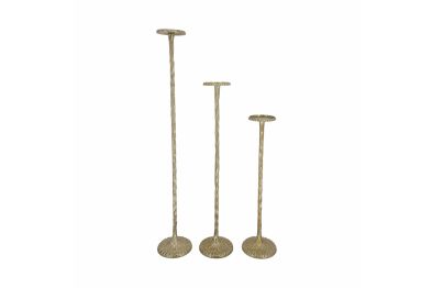 Crafted in a brassy gold color, these candle holders beautifully blend the charm of antique aesthetics with contemporary design elements.
