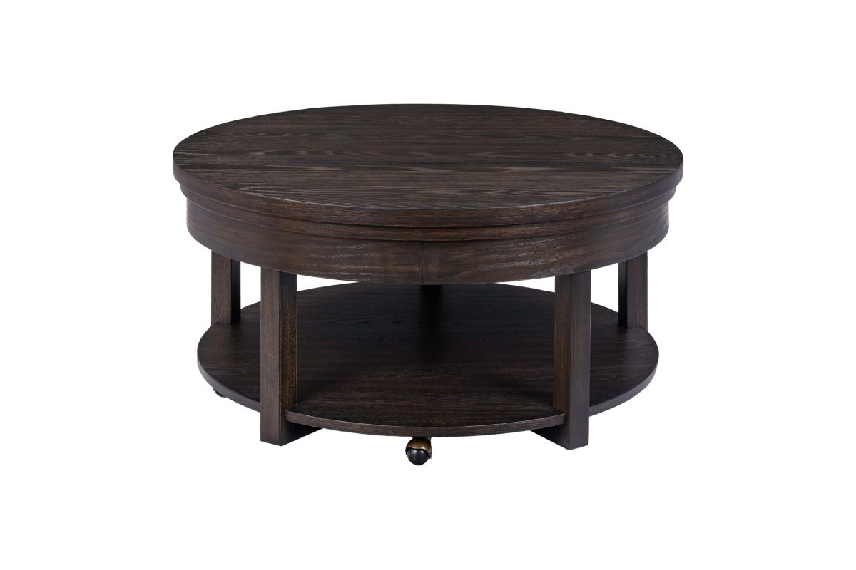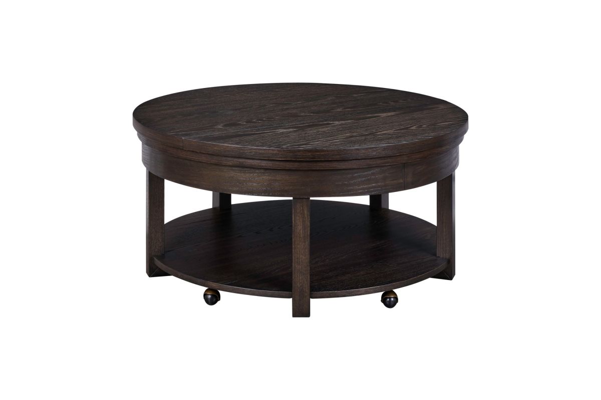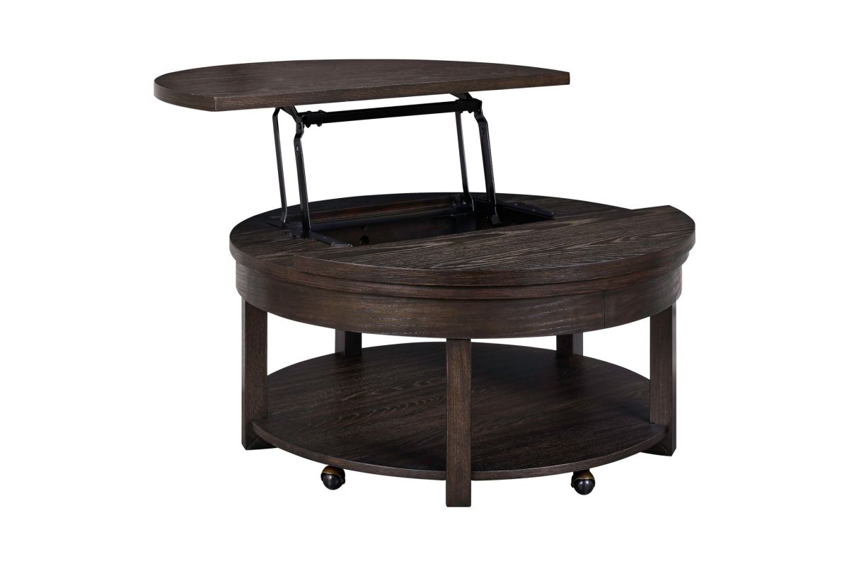 The Weston Lift Top Coffee table features softly rounded corners with heavy wirebrused distressing. The table offers an extra shelf for storage. Easily access items from the table with the lift top feature.