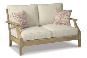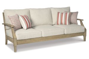 An effortlessly elegant choice in outdoor furniture, this outdoor sofa marries sturdiness and style in such a delightful way. For that much more weather protection, the sofa's eucalyptus wood frame with tapered touches and slat styling is treated to a 5-step finishing process. Sumptuously soft yet remarkably durable, the included cushions and colorful throw pillows are wrapped in a high-performing, low-maintenance Nuvella™ fabric you're sure to love.