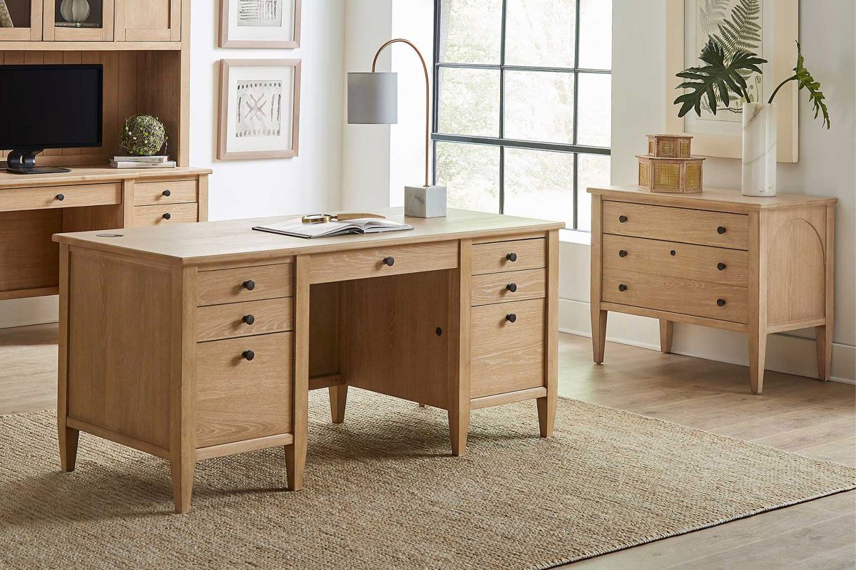 Laurel is inspired by today’s relaxed lifestyle, set to create a statement. Its unique natural finish appears dry with wire brushing and cerusing to highlight the wood grain for added depth and texture. Laurel’s scale is modern with arch elements that are pulled from traditional inspiration. Slight shaping of breakfronts and arched side panels create a softness that ties the collection together to form a clean and casual look, perfect to create calm in a busy workspace.
