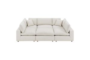 A haven for cozy relaxation, Commix features plush comfort and a clean-lined design. The spacious profile makes an attractive statement in the modern home. Covered in a boucle fabric with a charming nubby texture, this upholstered sectional sofa comes with a solid wood construction and foam padded and duck down cushions for a luxurious sink-in feel. Commix features overstuffed down feather cushions that offer a feeling of relaxation and calming comfort while lounging, making it the perfect addition to the living room, family room, or game room. Made for sprawling out or curling up, Commix beckons you and guests to sit and stay a while. Includes plastic foot glides. Weight Capacity of Each Piece: 331 lbs.