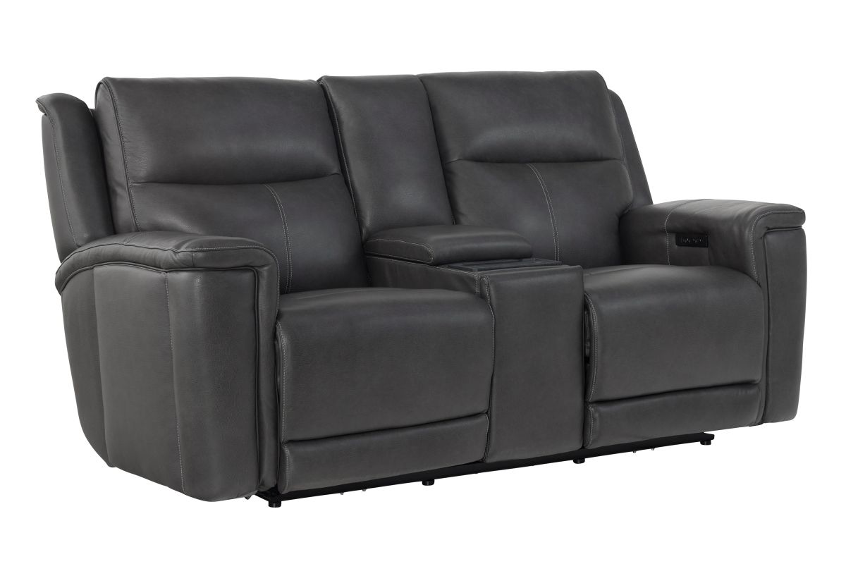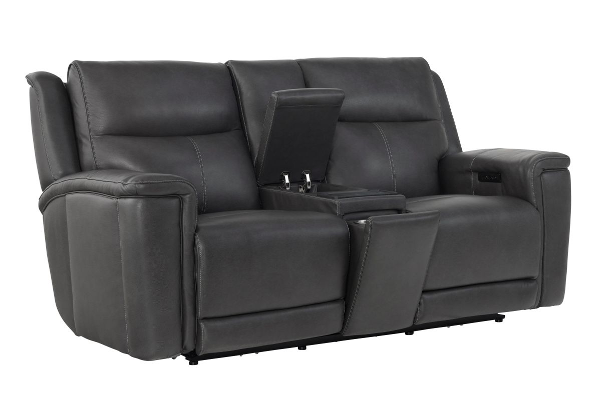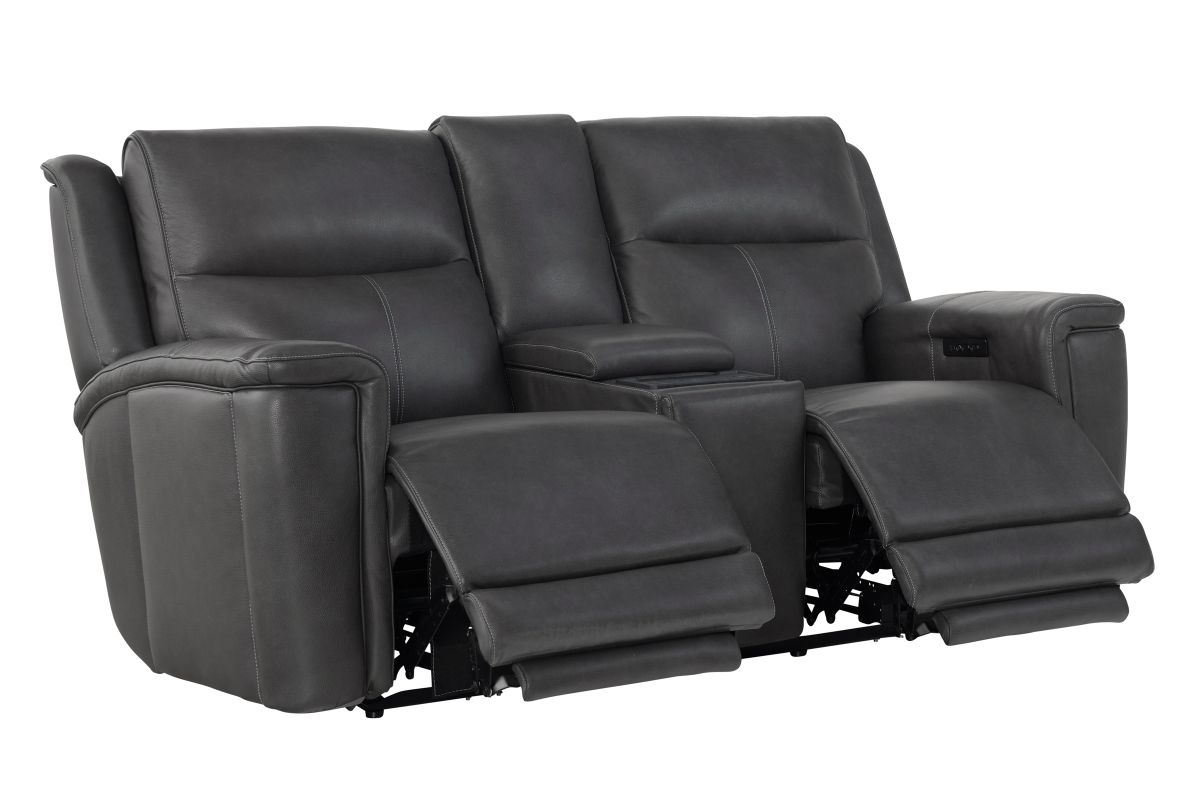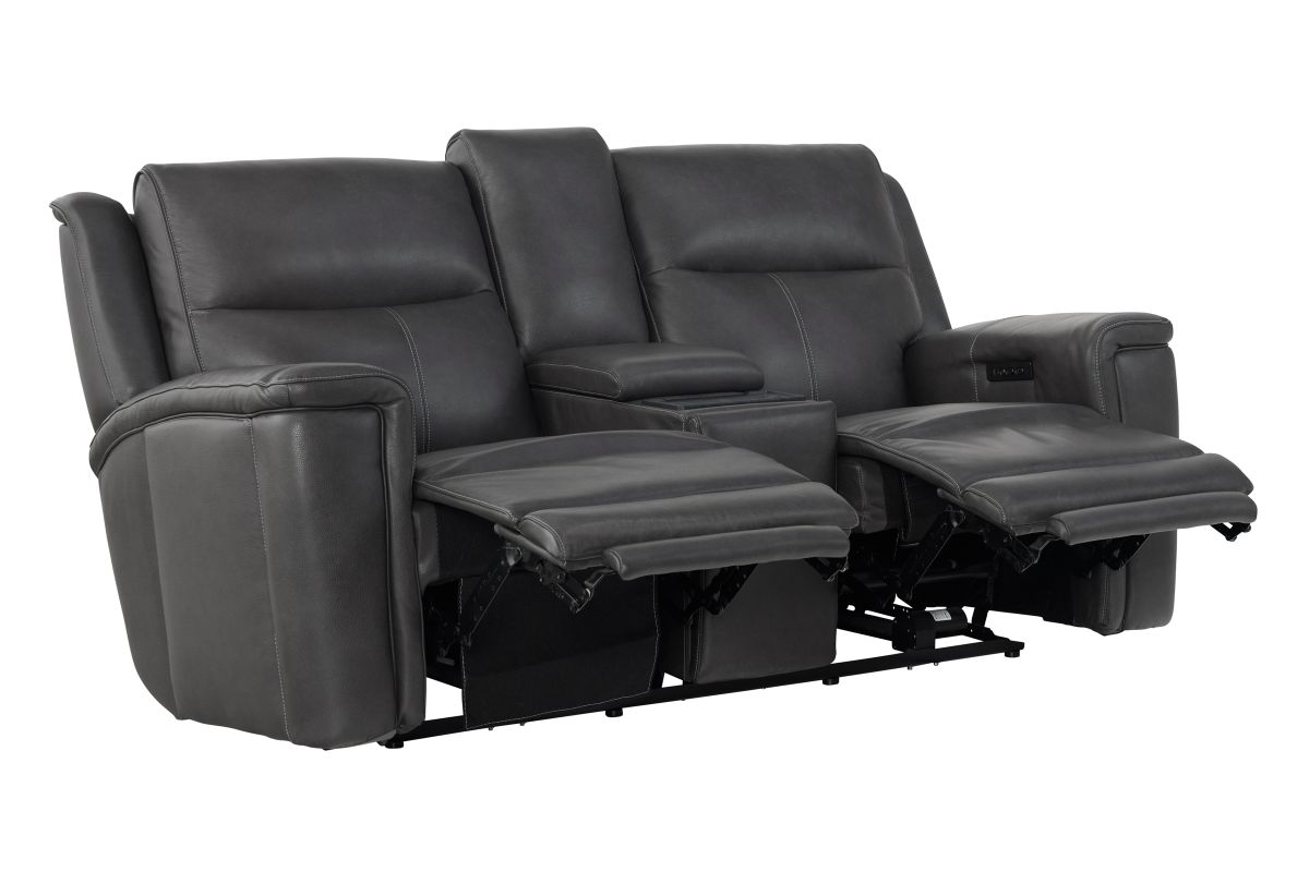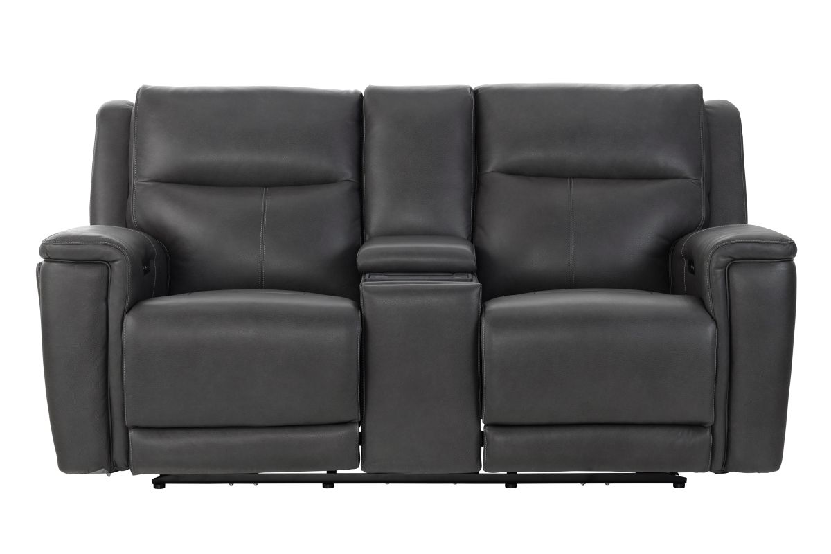 Experience comfort and convenience like never before with the Sonic Grey Dual Power Reclining Console Loveseat. Upholstered in sleek, premium leather, this loveseat combines modern design with innovative features to elevate your living space. Dual power reclining lets you independently adjust the headrest and footrest for customized relaxation, while the built-in audio system delivers rich sound that enhances movie nights, game days, or simply listening to your favorite music. The center console is designed with practicality in mind, offering storage, cup holders, and a wireless charging pad to keep your devices powered without the hassle of cords. Perfect on its own or as part of the Sonic Grey collection, this loveseat completes your seating area when paired with the Sonic Grey Dual Power Reclining Sofa or the Sonic Grey Dual Power Recliner, creating a seamless blend of style, technology, and total comfort.