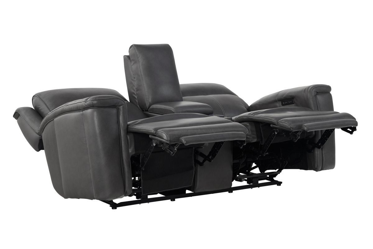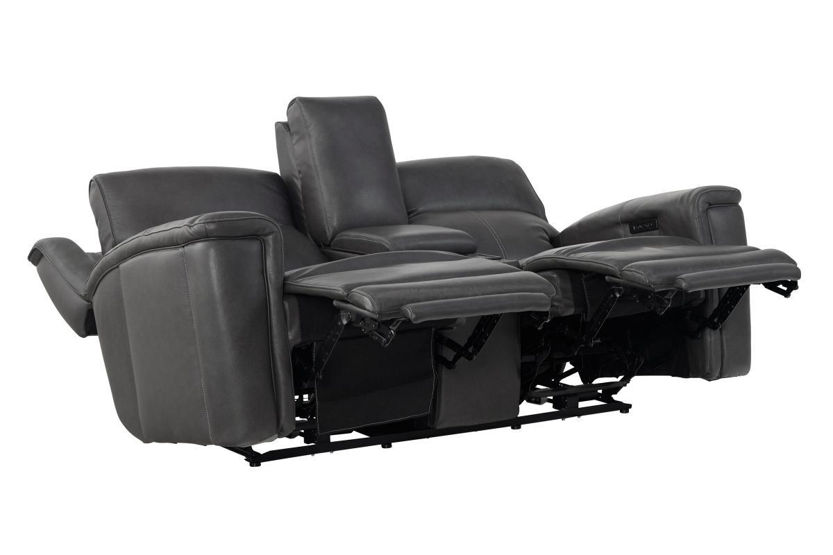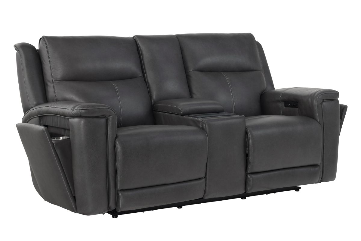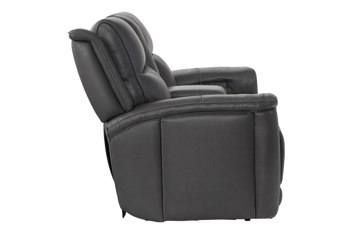 Experience comfort and convenience like never before with the Sonic Grey Dual Power Reclining Console Loveseat. Upholstered in sleek, premium leather, this loveseat combines modern design with innovative features to elevate your living space. Dual power reclining lets you independently adjust the headrest and footrest for customized relaxation, while the built-in audio system delivers rich sound that enhances movie nights, game days, or simply listening to your favorite music. The center console is designed with practicality in mind, offering storage, cup holders, and a wireless charging pad to keep your devices powered without the hassle of cords. Perfect on its own or as part of the Sonic Grey collection, this loveseat completes your seating area when paired with the Sonic Grey Dual Power Reclining Sofa or the Sonic Grey Dual Power Recliner, creating a seamless blend of style, technology, and total comfort.