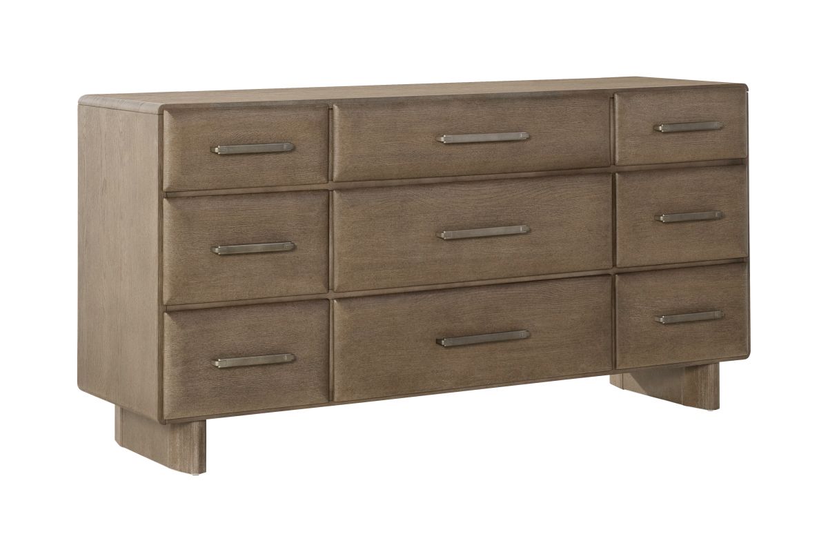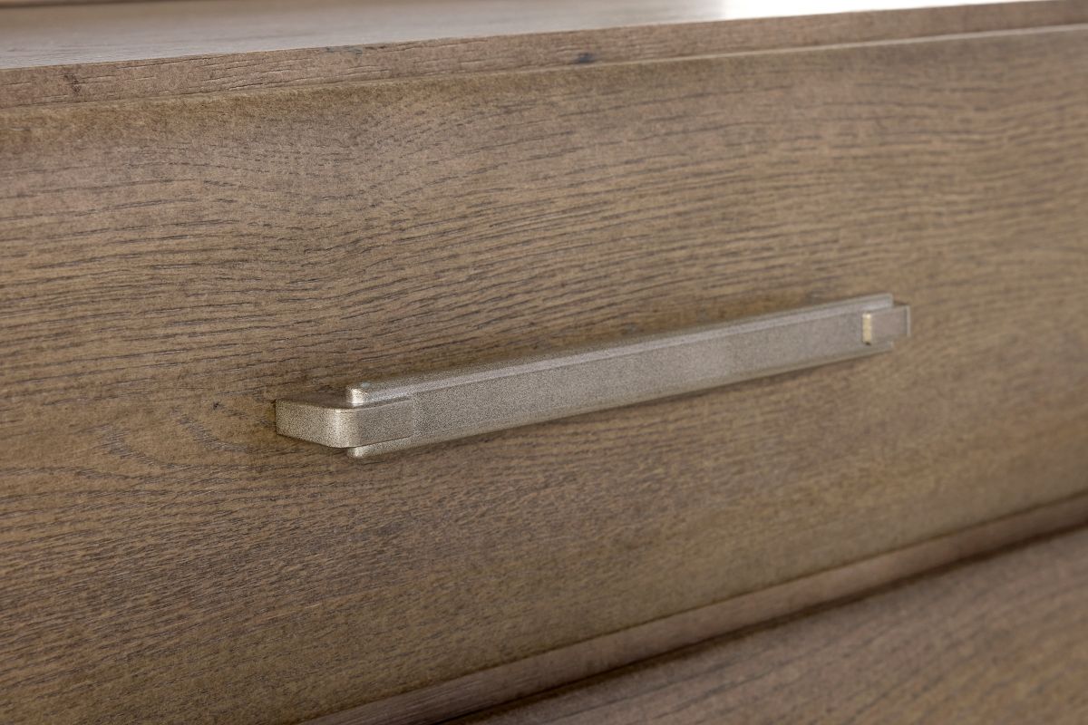 Discover the perfect harmony of classic elegance and modern innovation with the Bentley collection. Crafted with oak-embossed birch veneer in a refined White Oak finish, this collection brings natural texture and warmth to any bedroom. The upholstered panel headboard offers a soft, tailored accent, while cedar-lined bottom drawers provide luxurious, aromatic storage.