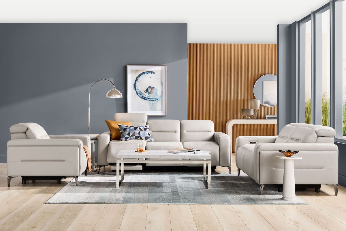 Where comfort meets contemporary design. The Amalfi Dual Power Reclining Collection features smooth lines, plush cushions, and premium upholstery available in Grey or Blue. With dual power reclining, you can independently adjust the headrest and footrest to find your ideal lounging position—perfect for movie nights, afternoon naps, or quiet evenings in.