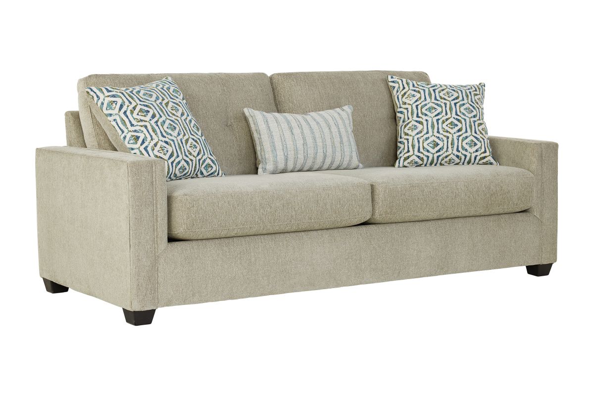 The Eliza Queen Sleeper Sofa combines contemporary design with everyday functionality, making it the perfect centerpiece for both lounging and hosting. Upholstered in your choice of blue, cream, or olive, this sofa brings a soft, inviting feel to any space.