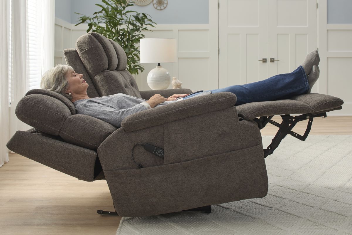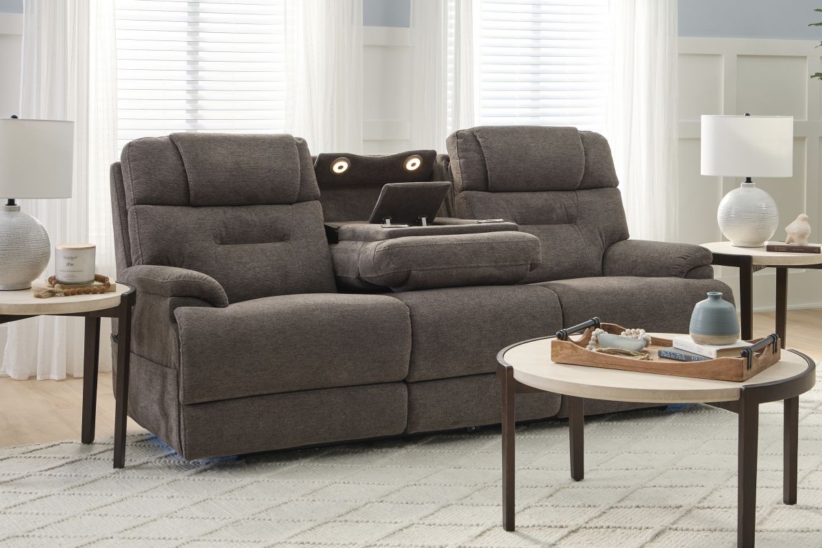 Blissful relaxation, rejuvenating sleep, all with Zofa. Designed as two Zecliners in one, this power sleep sofa brings cutting-edge technology to create the ultimate in luxury. With Zero Gravity recline, CloudLux™ seat cushions, and heat and air massage features, the Zofa brings wellness to relaxation. Upholstered in moisture-resistant and easy to clean performance fabric choices, including a scientifically backed Nanobionic fabric that contains infrared-emitting minerals that recycle the body's energy. The future of modern reclining furniture, Zofa includes motion-sensitive LED base lighting, with USB ports, bluetooth speaker, and a wireless charging pad to keep all your devices powered up and within reach.