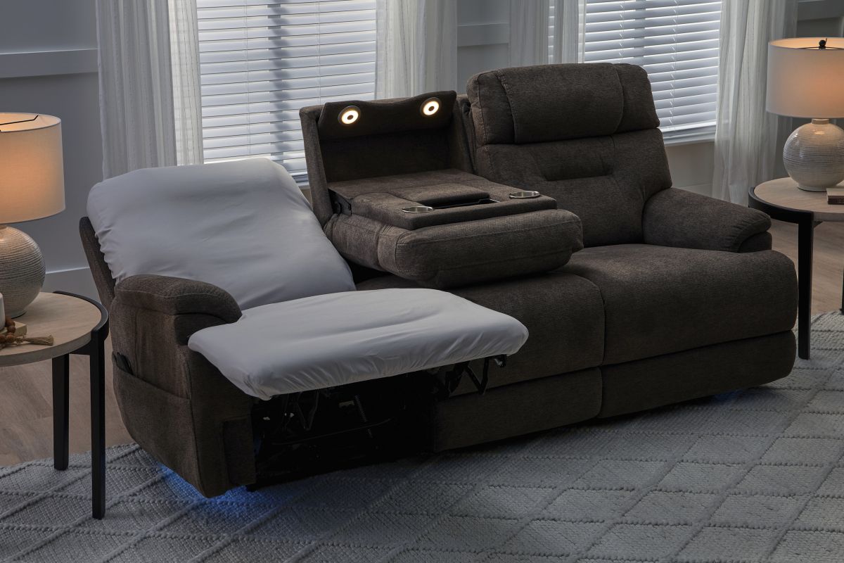 Blissful relaxation, rejuvenating sleep, all with Zofa. Designed as two Zecliners in one, this power sleep sofa brings cutting-edge technology to create the ultimate in luxury. With Zero Gravity recline, CloudLux™ seat cushions, and heat and air massage features, the Zofa brings wellness to relaxation. Upholstered in moisture-resistant and easy to clean performance fabric choices, including a scientifically backed Nanobionic fabric that contains infrared-emitting minerals that recycle the body's energy. The future of modern reclining furniture, Zofa includes motion-sensitive LED base lighting, with USB ports and a wireless charging pad to keep all your devices powered up and within reach.