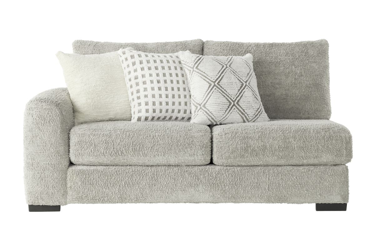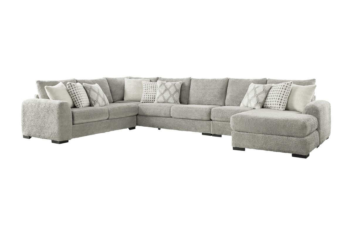 Transform your living room into a modern retreat with the Haven Dove 4-Piece Sectional with Right-Arm Facing Chaise. Wrapped in luxuriously soft chenille fabric, the fresh dove hue brightens your space while delivering an airy, inviting vibe.