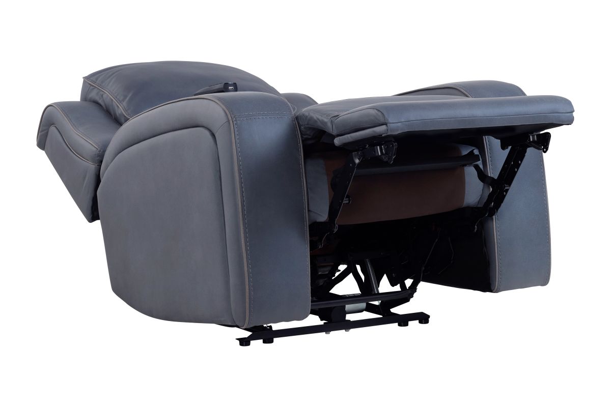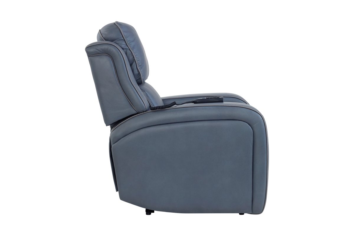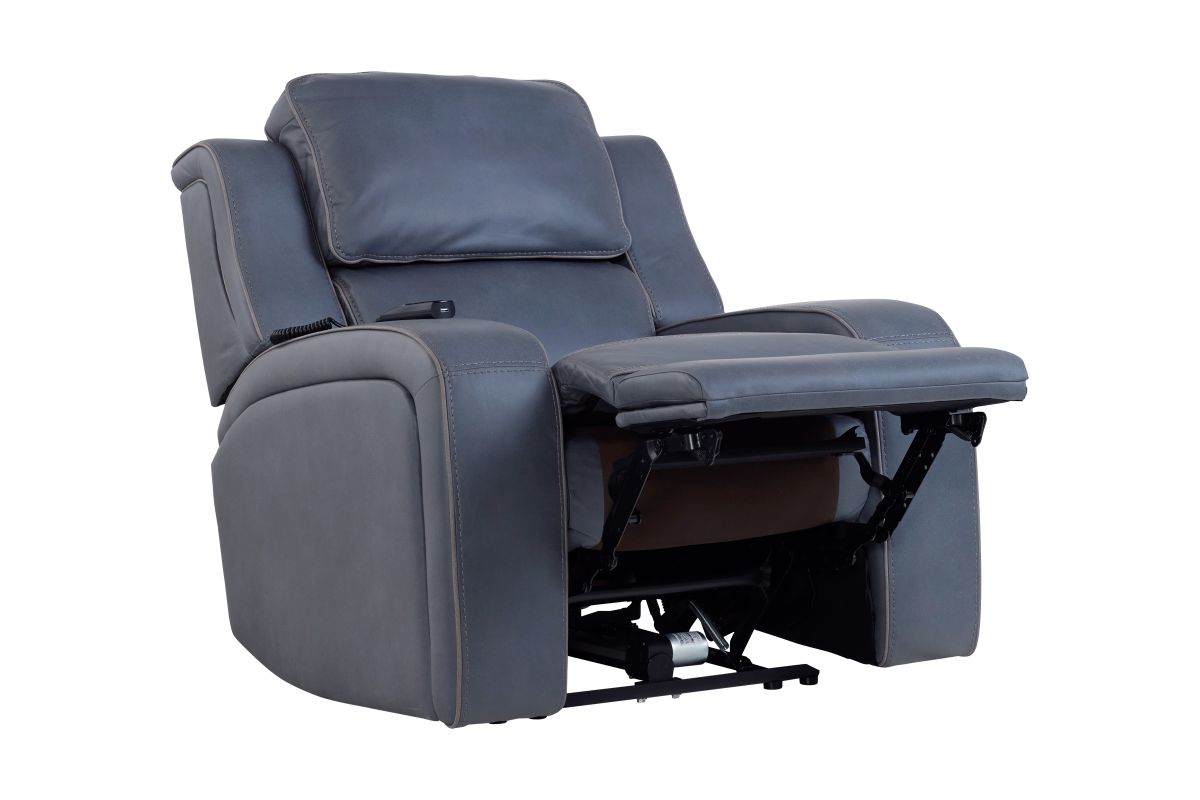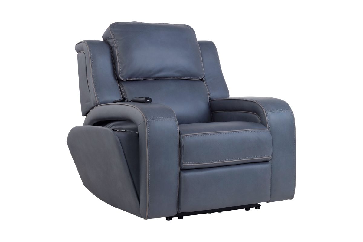 The Pulse Blue Dual Power Recliner combines modern innovation with sleek, contemporary style for the ultimate relaxation experience. Upholstered in a rich blue fabric with clean stitching, this recliner features dual power controls that let you independently adjust the reclining position and power headrest for fully personalized comfort.