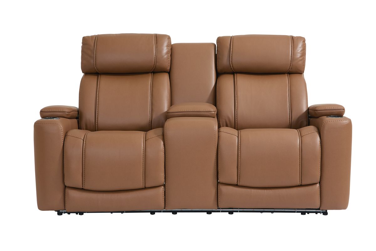 Discover the perfect blend of comfort, innovation, and style with the Volt Saddle Dual Power Reclining Console Loveseat. Built for those who want more out of their living room, this loveseat delivers a true luxury seating experience with high-end design and advanced functionality.