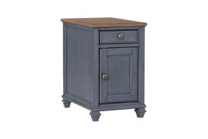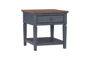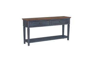 The Americana Chairside Table offers a charming blend of coastal and classic styles. Its Corduroy Blue finish and lightly distressed look are complemented by elegant brushed hardware, making it a timeless addition to any space. Perfect for bringing a touch of Americana charm right beside your favorite chair.