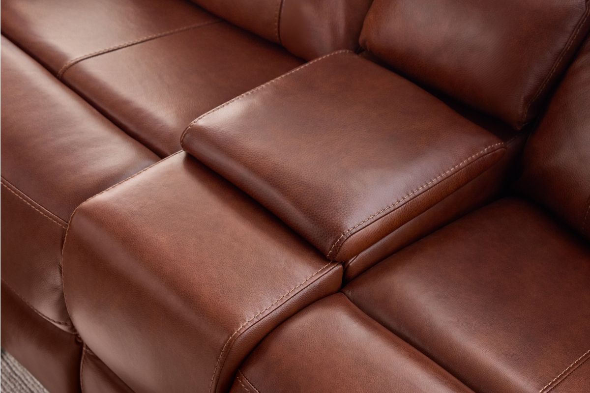 The Lawrence Leather Reclining Console Loveseat combines timeless comfort with everyday functionality. Upholstered in rich brown leather, it offers a warm and inviting look that elevates any living space. Designed with manual reclining, you can kick back and relax at your own pace. The built-in center console adds convenience with cup holders and storage, keeping your essentials close at hand. Perfect for cozy evenings or casual lounging, this loveseat blends durability, comfort, and classic style into one must-have piece.