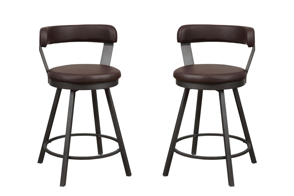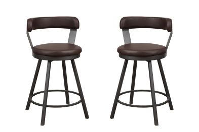 Wood and metal are combined to create the modern style of the Tempa Collection. Metal Framing supports the table and creates the profile in the casual dining table. Rich oak veneer wood top has been given a burnished finish to complement the grey metal frame. Coordinating swivel counter height chair is also avaialble. Sold in a set of two.