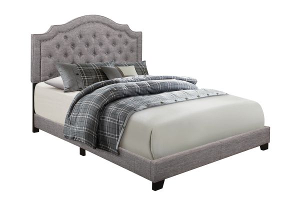 Queen Bed W/Grey Fabric. Assembly required.