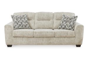 This sofa speaks to those drawn to fresh, contemporary style with richly neutral appeal. Subtle and sophisticated, the plush upholstery and dark tri-block legs are a natural complement for so many color schemes. Two accent pillows make the seating even more welcoming. Curling up on this sofa to enjoy a night in is never out of the question.