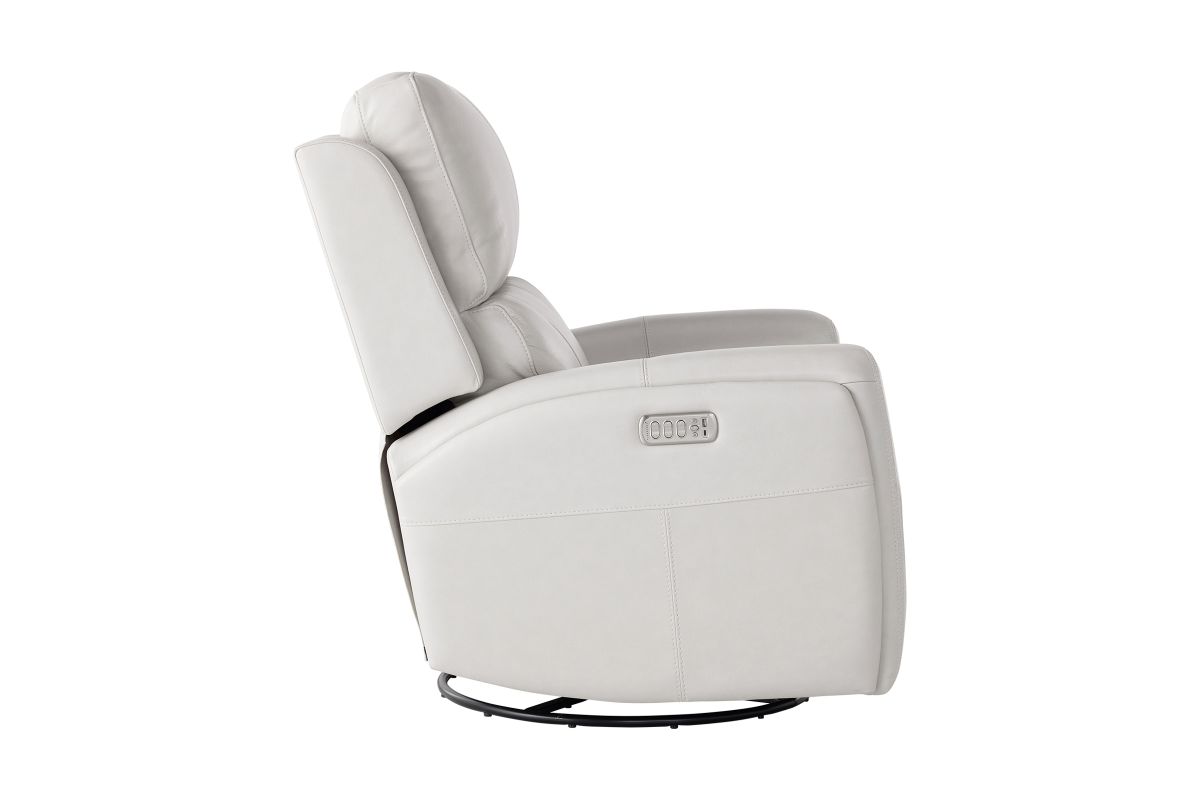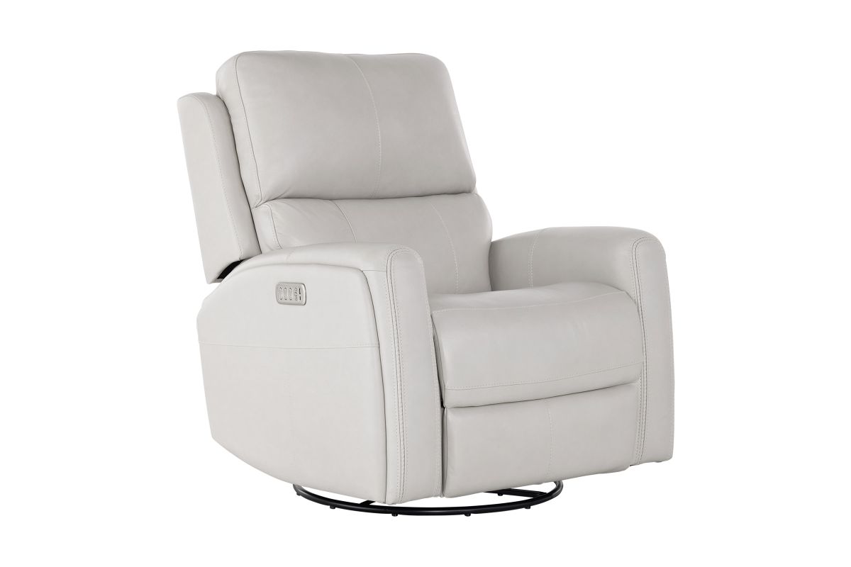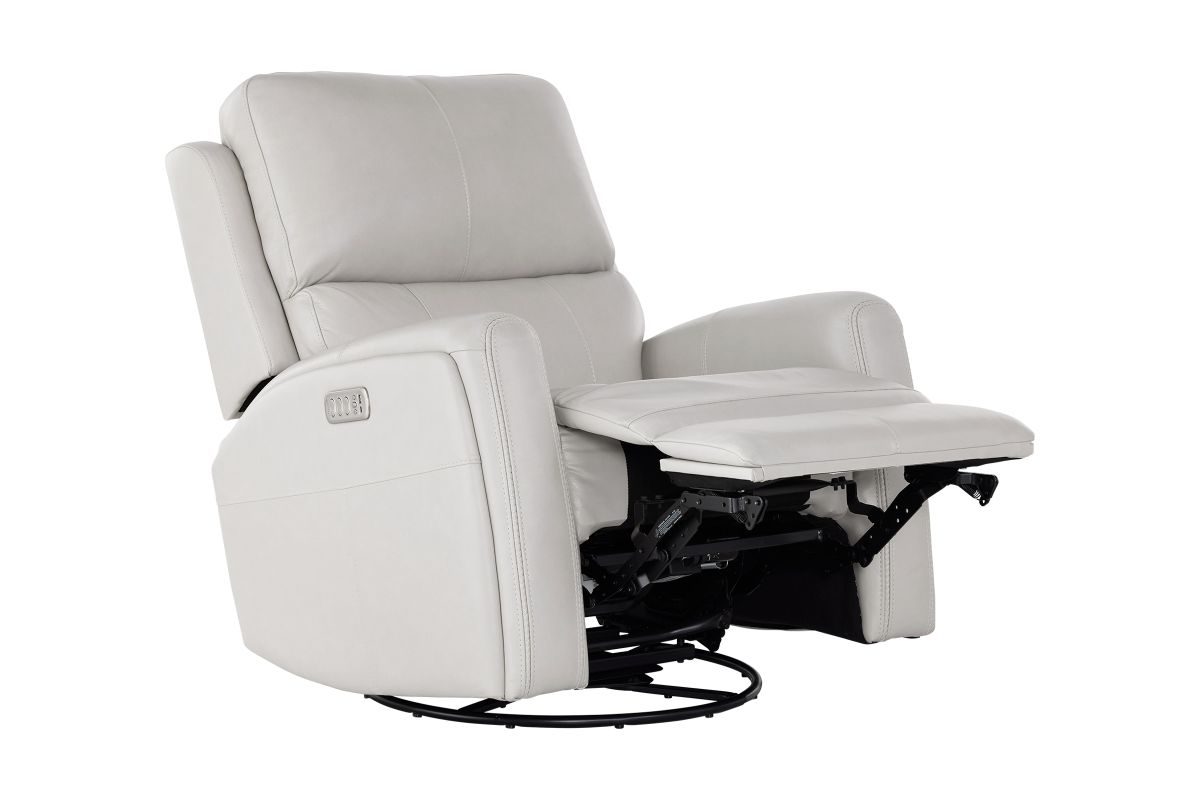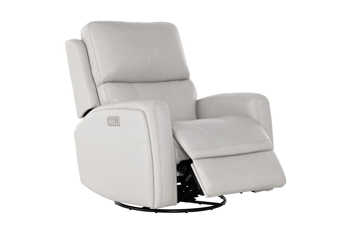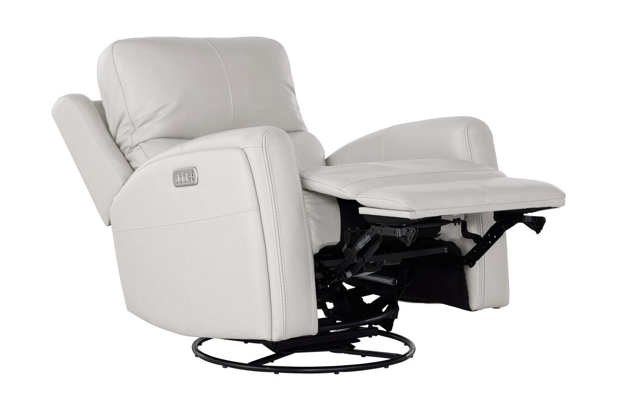 Enjoy the ultimate in ergonomics with the Linton triple power swivel gliding recliner with power headrest, lumbar, heat, and massage. The plush, divided back cushion supports the back while the padded track arms showcase an eye-catching cross-stitch detail. Independently adjust the recline, headrest and lumbar for a customized sit. This recliner effortlessly swivels and glides for versatile comfort, while adjustable heat and air massage features in the seat and backrest provide elevated wellness. And with Flexsteel’s Blue Steel Spring™ at the heart of the seat, the Linton swivel glider recliner is designed to last.